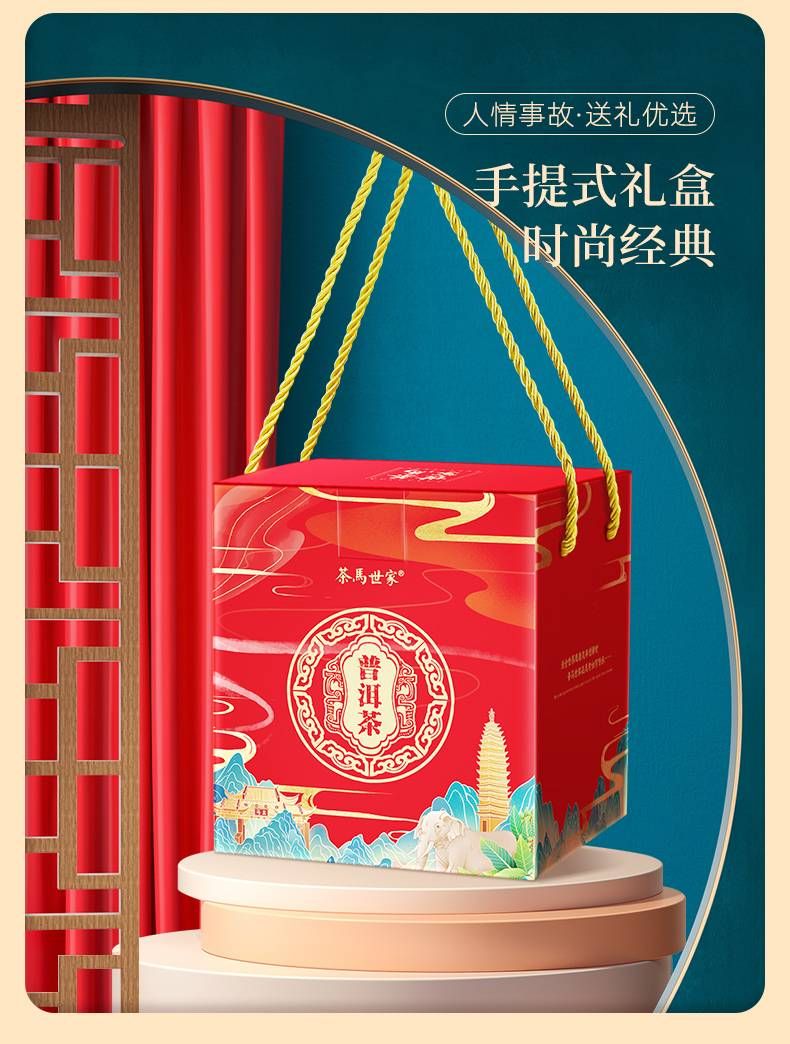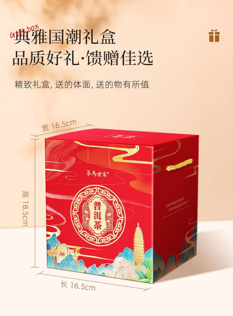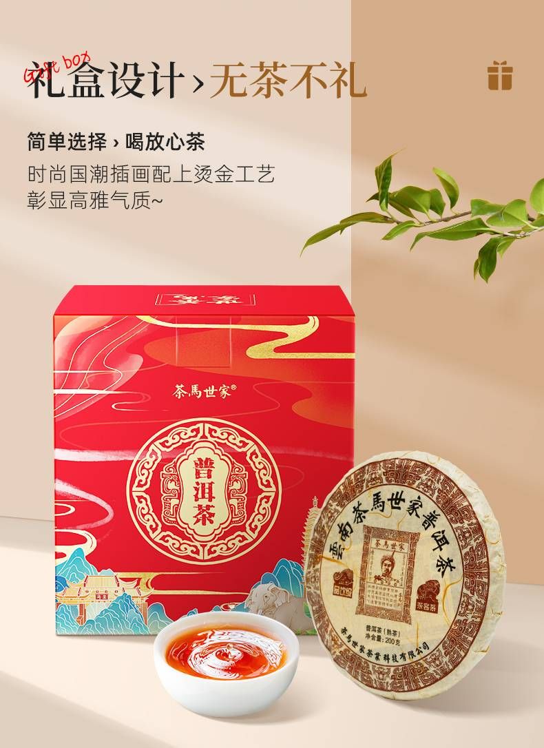 茶马世家普洱熟茶整提装云南布朗山七子饼乔木春茶礼盒装自饮送礼1400g