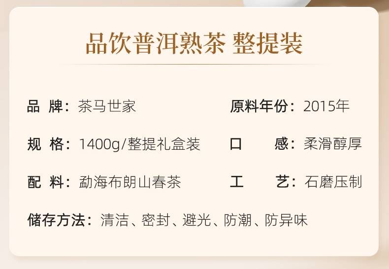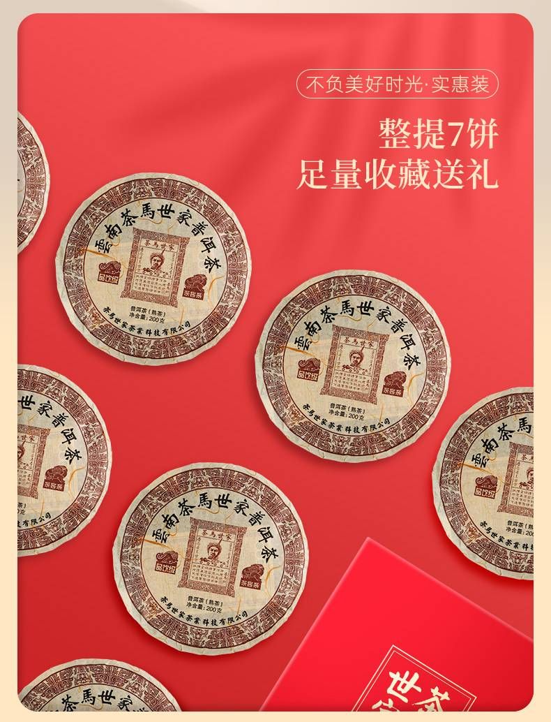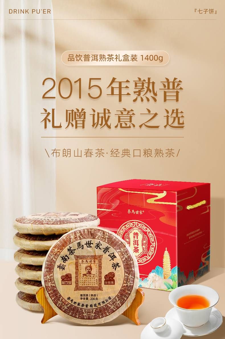 商品名称:茶马世家普洱熟茶整提装云南布朗山七子饼乔木春茶礼盒装自饮送礼1400g