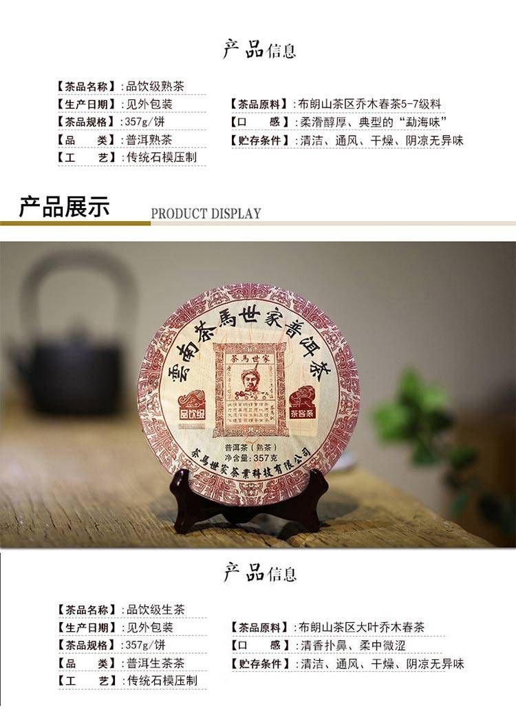 商品名称:茶马世家 品饮级普洱茶生茶 熟茶组合装礼盒714g