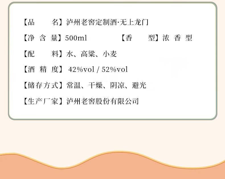 商品名称:泸州老窖 无上龙门·福 500ml*2瓶