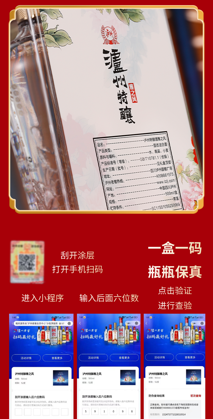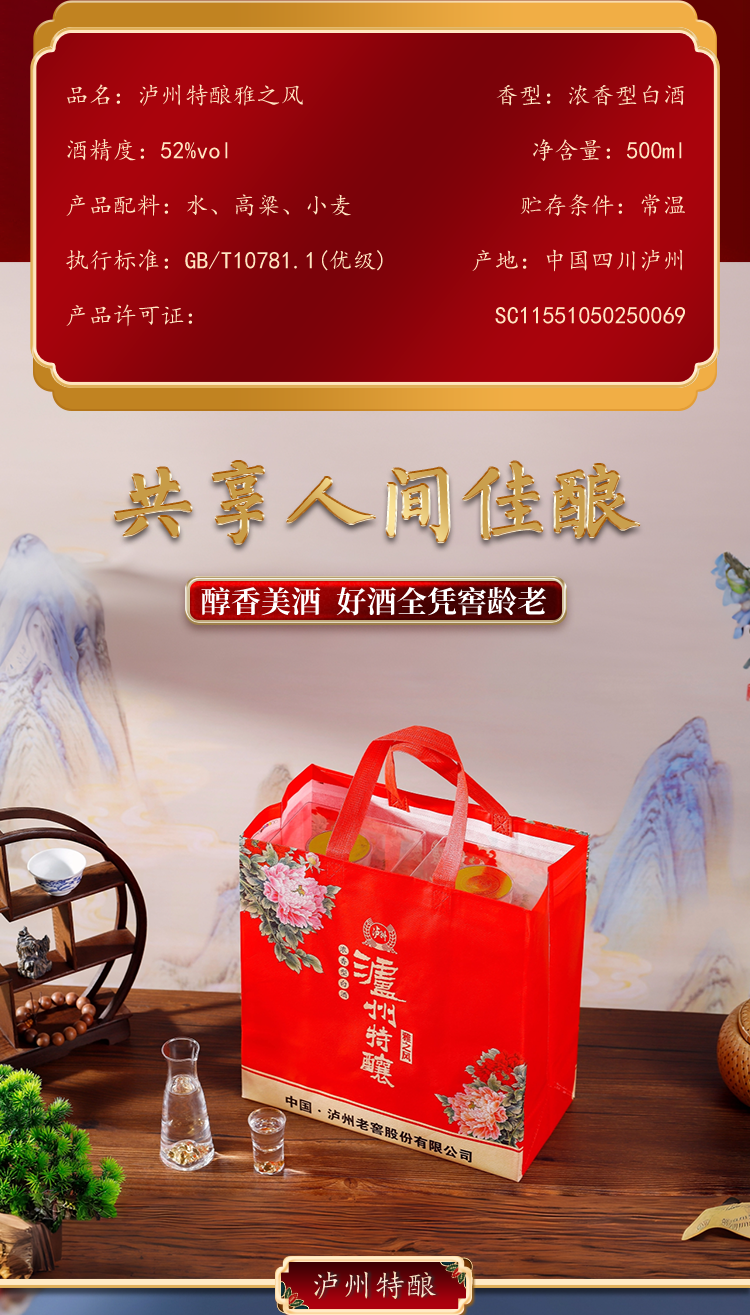 商品名称:泸州老窖泸州特酿-雅之风 500ml*6瓶