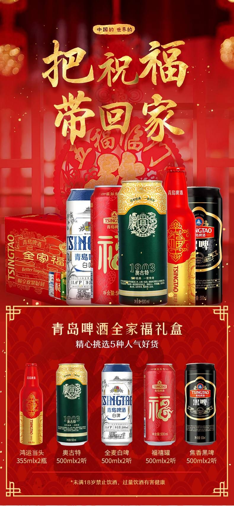 青岛啤酒全家福礼盒装 5种人气单品组合