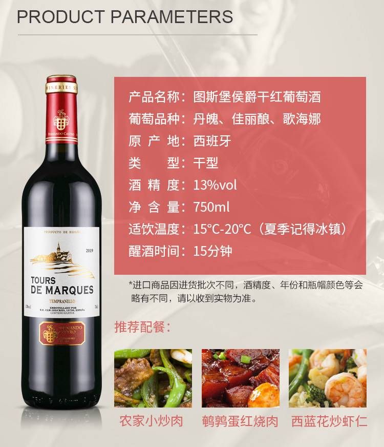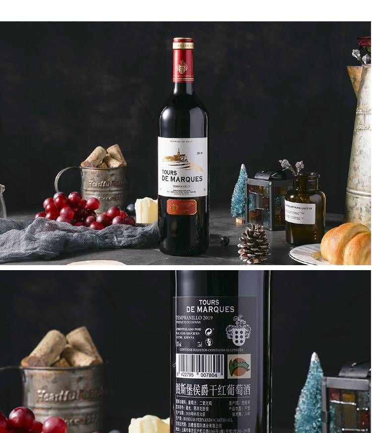商品名称:皮盒+酒具4件套 西班牙原瓶进口图斯堡侯爵干红葡萄酒750ml*2