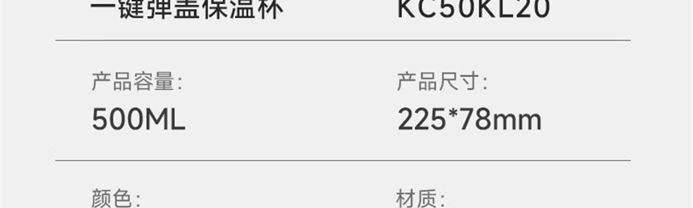 商品名称:苏泊尔(SUPOR)一键弹盖保温杯 KC50KL20儒雅黑 500ML