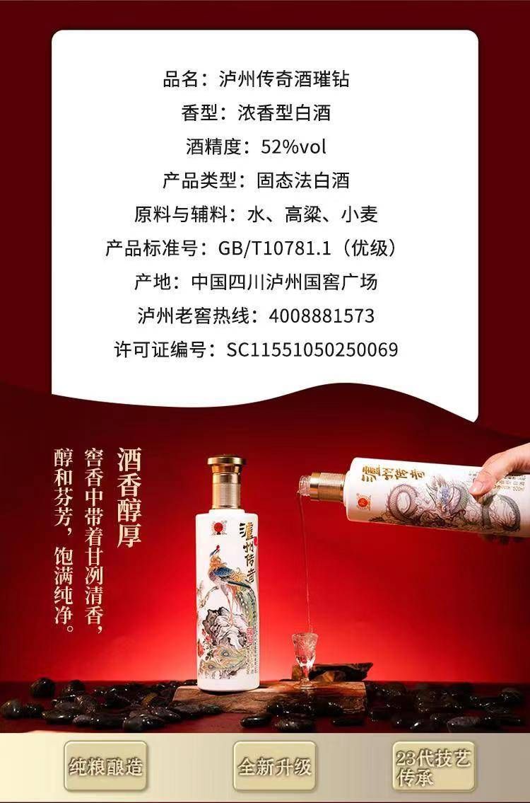 商品名称:泸州老窖 泸州传奇52度浓香型白酒礼盒 送礼佳品 500ml*2