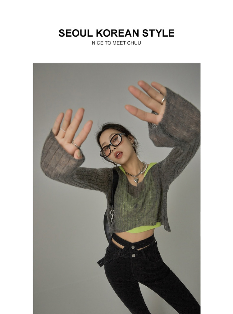 商品名称:CHUU纯色透视性感针织衫女春秋薄低圆领长袖上衣 752979