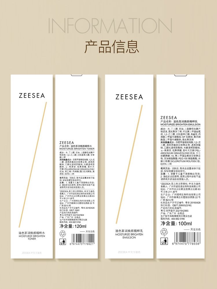 商品名称:ZEESEA/滋色 澎润焕颜精粹水乳 精粹乳95ml/精粹水110ml