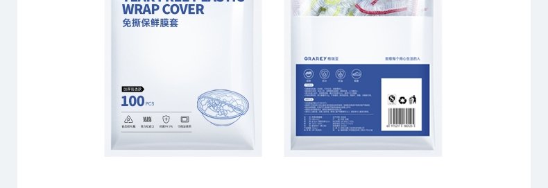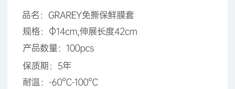 商品名称:格瑞亚 (GRAREY)免撕保鲜膜套时尚三色高压高透款 2包/200个