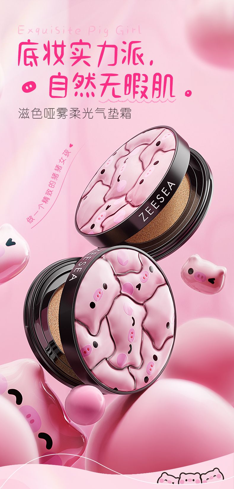 商品名称:【送替换装】ZEESEA/滋色 哑雾柔光猪猪气垫BB霜10g