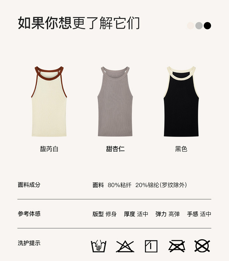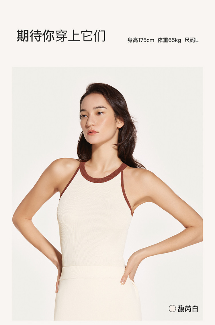 商品名称:【刘雯同款】撞色小圆领针织打底背心吊带内搭可外穿女无袖上衣 316416