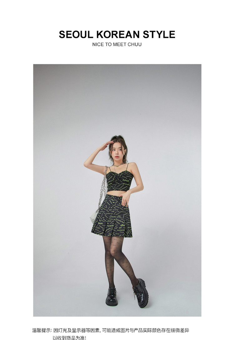 商品名称:CHUU字母印花高腰百褶半身裙女春夏秋显瘦a字短裙 569555