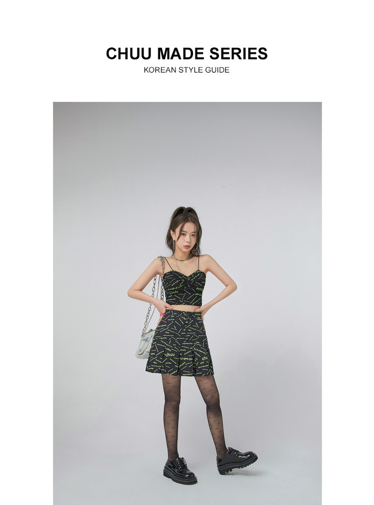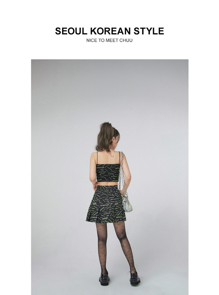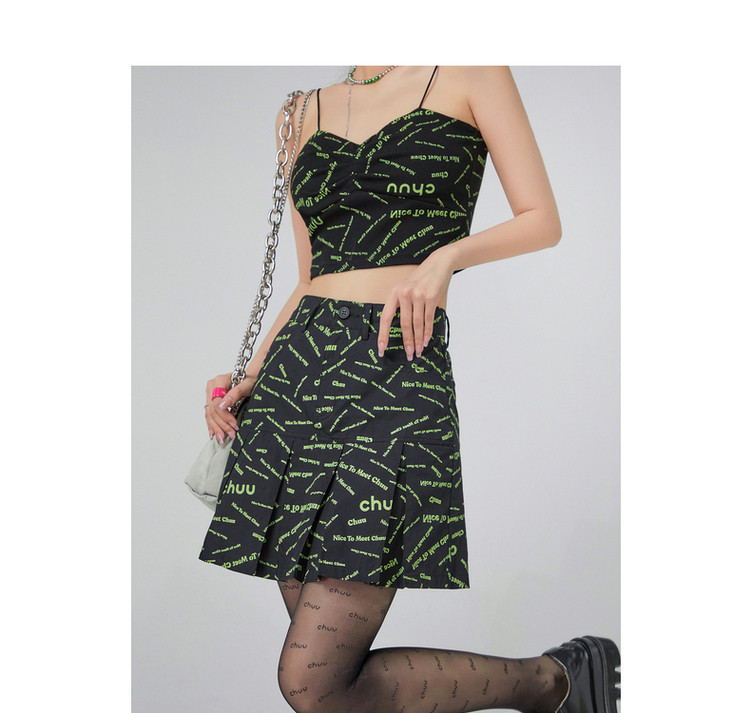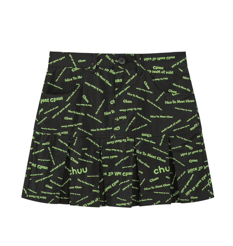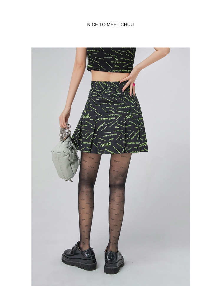 CHUU字母印花高腰百褶半身裙女春夏秋显瘦a字短裙 569555