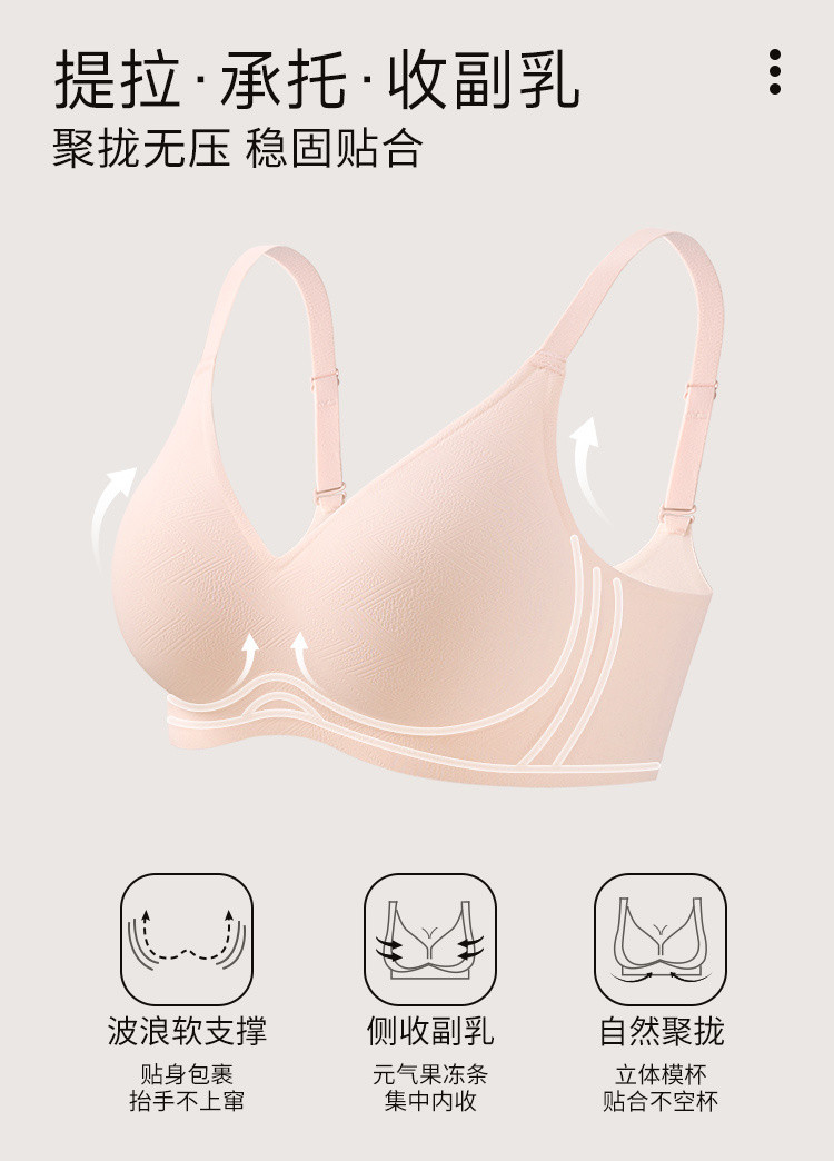 商品名称:【含桑蚕丝莫代尔】小胸聚拢不空杯无痕内衣女夏季薄款无钢圈文胸 945675