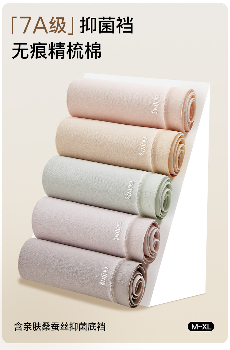 【含桑蚕丝7A抑菌裆】5条装纯色棉质提花女士内裤女性感短裤衩 308043