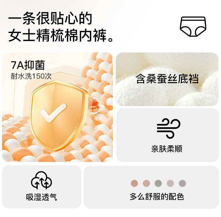 商品名称:【含桑蚕丝7A抑菌裆】5条装纯色棉质提花女士内裤女性感短裤衩 308043