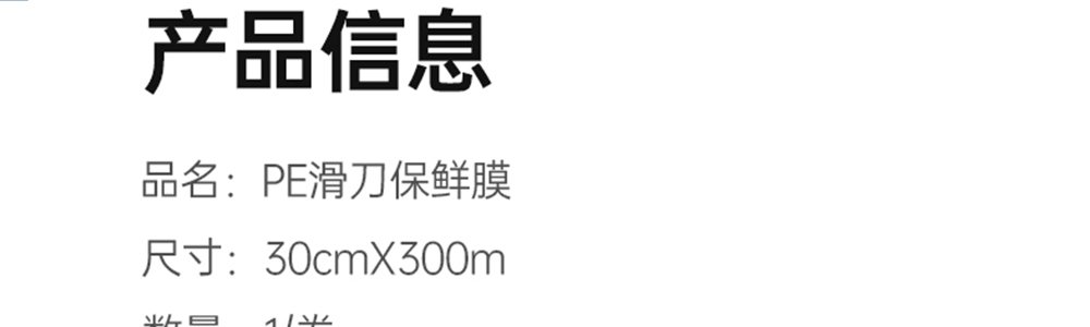 商品名称:格瑞亚 (GRAREY)PE滑刀保鲜膜 30cm*300m