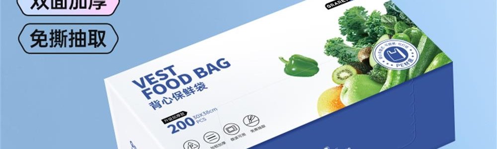 商品名称:格瑞亚 (GRAREY)澳洲背心式保鲜袋 2盒/400只 中号30x38cm 盒装