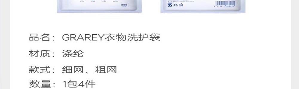 商品名称:格瑞亚(GRAREY)衣物洗护袋 细网4件/套