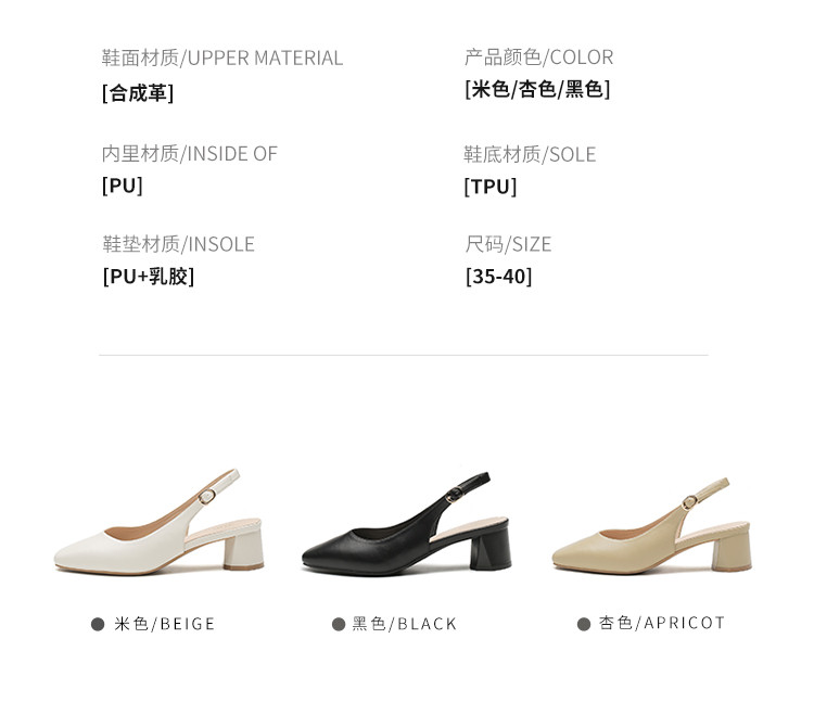 商品名称:【复古优雅】配裙子气质粗跟包头凉鞋女士后空凉鞋女夏季凉鞋女鞋 169216