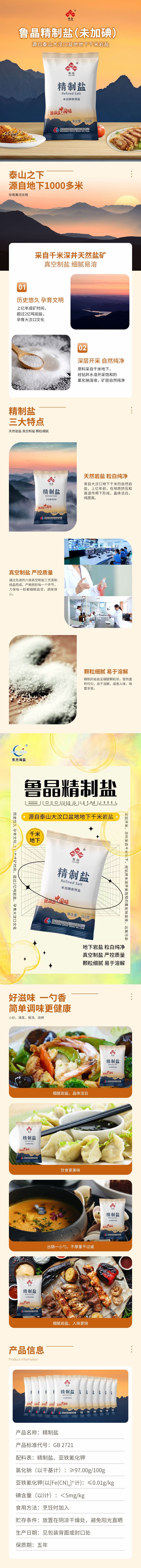 商品名称:鲁晶 精制盐(未加碘矿盐)260g/袋*11袋