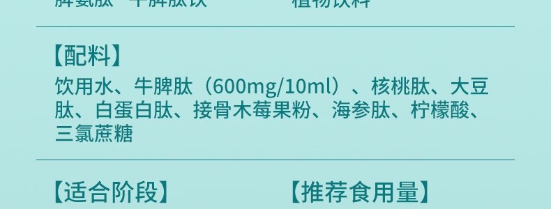 商品名称:优普贝 脾氨肽牛脾肽饮160ml(10ml*16瓶)