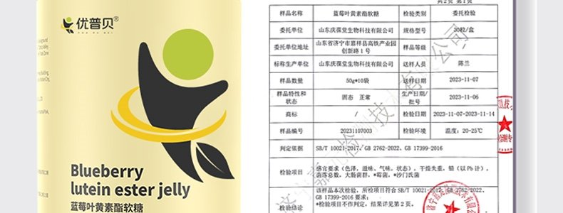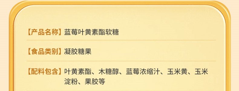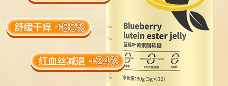 商品名称:优普贝 蓝莓叶黄素酯软糖90g(3g*30粒)