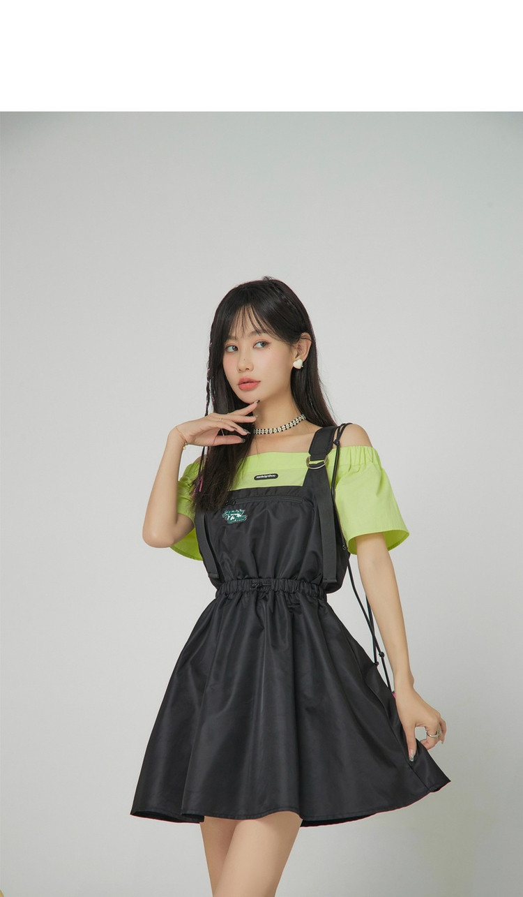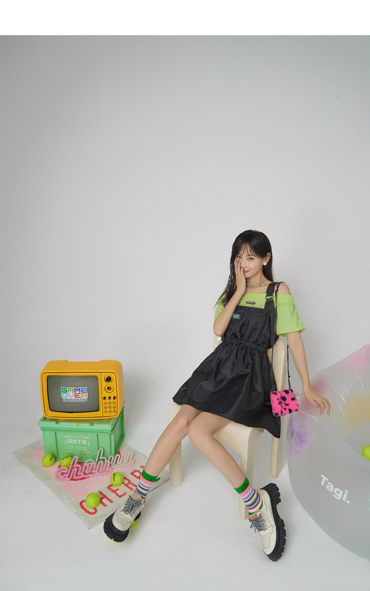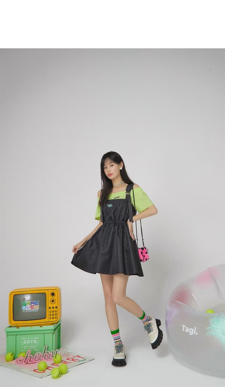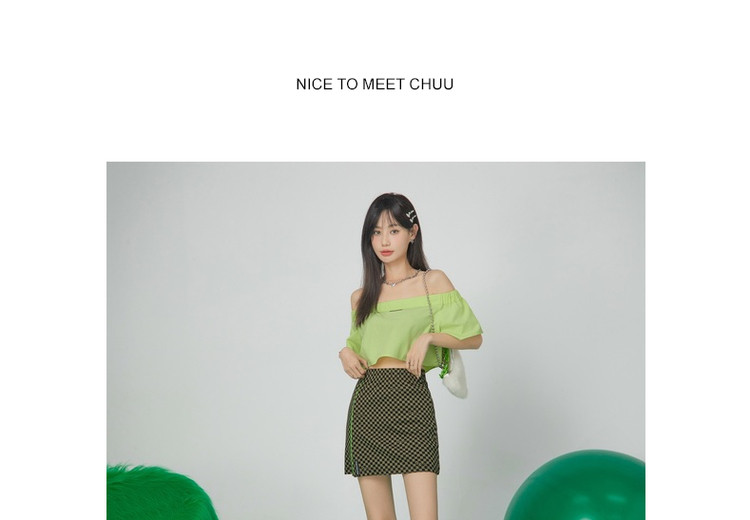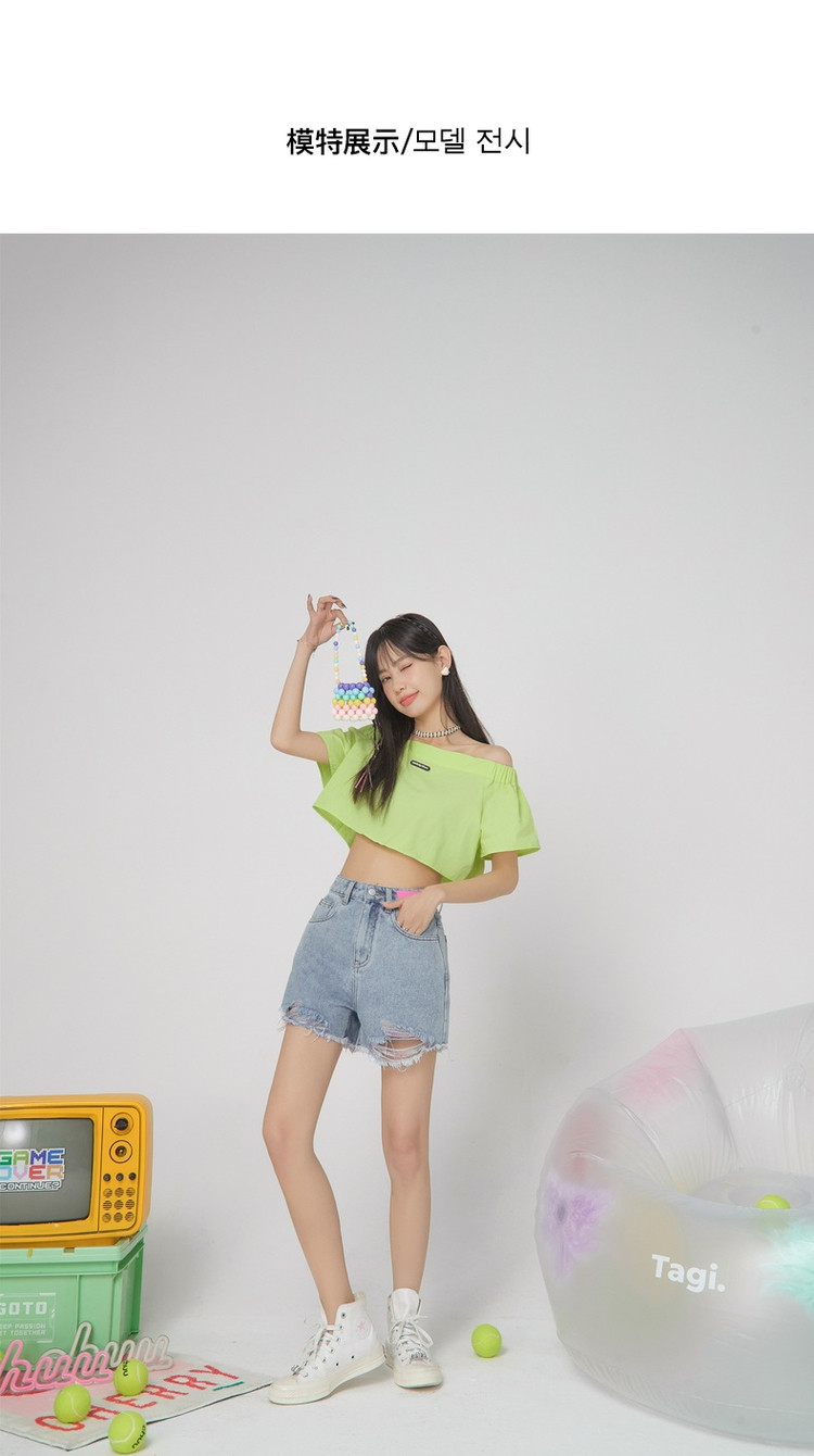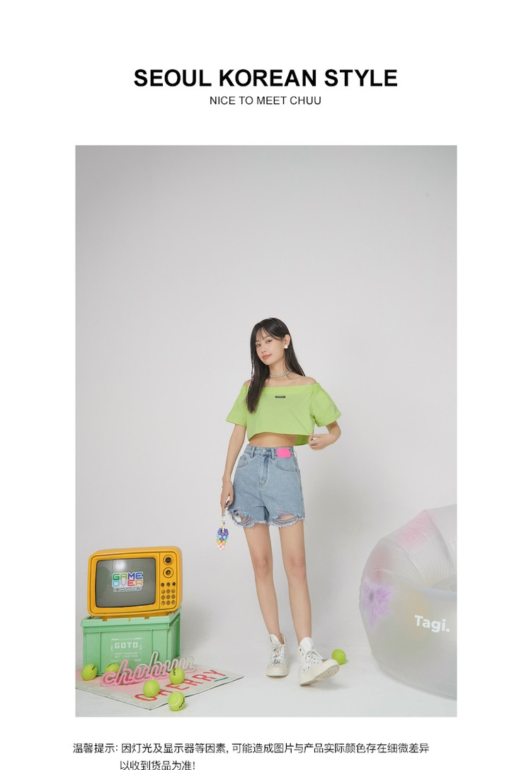 商品名称:CHUU甜辣一字肩短款衬衫衫女夏贴标宽松短袖上衣 684947