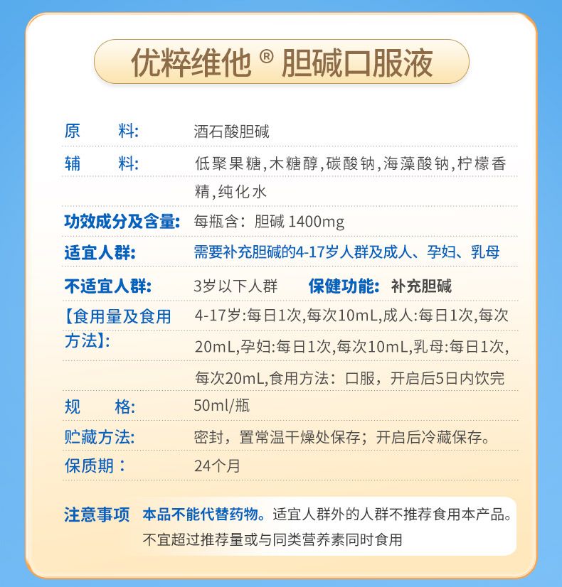 商品名称:亚西亚 胆碱口服液 6瓶*1盒
