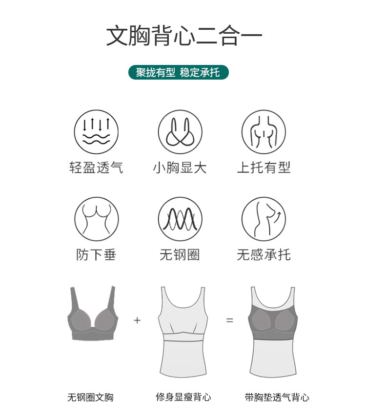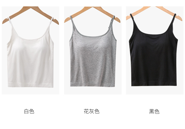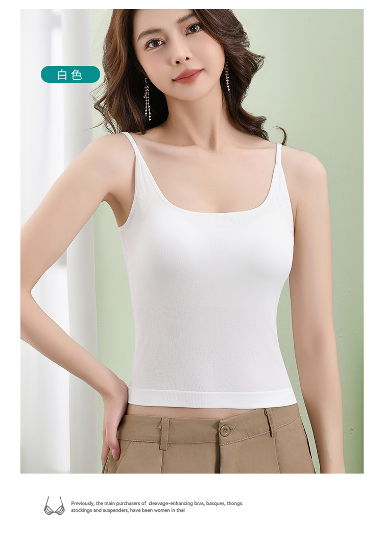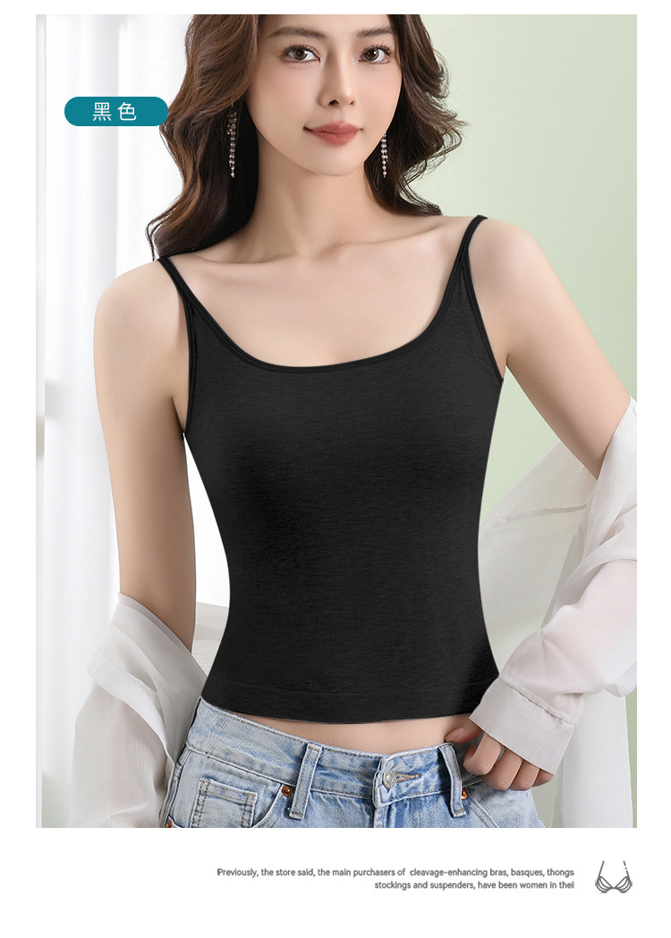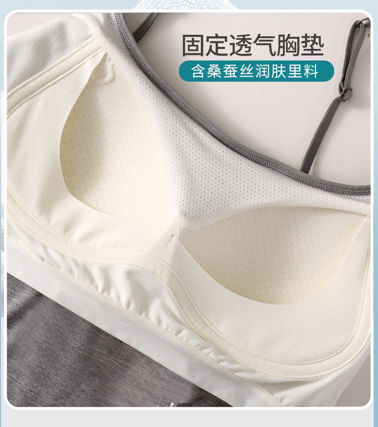 商品名称:【含桑蚕丝润肤】春夏软糯莫代尔带固定胸垫女士打底吊带背心内衣 102046