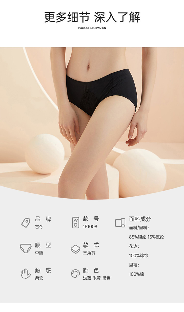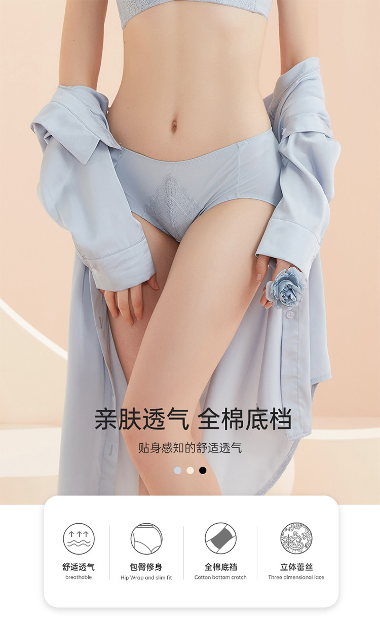 商品名称:【百棉里档】全棉底档舒适不勒透气清爽高弹力蕾丝中腰三角内裤女 620427