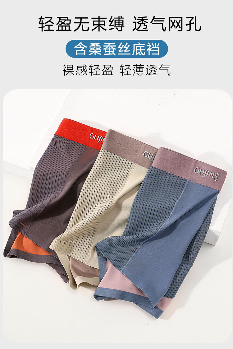 商品名称:【空间够大 透气不闷热】3条装轻盈无束缚含桑蚕丝底档男士内裤 129886