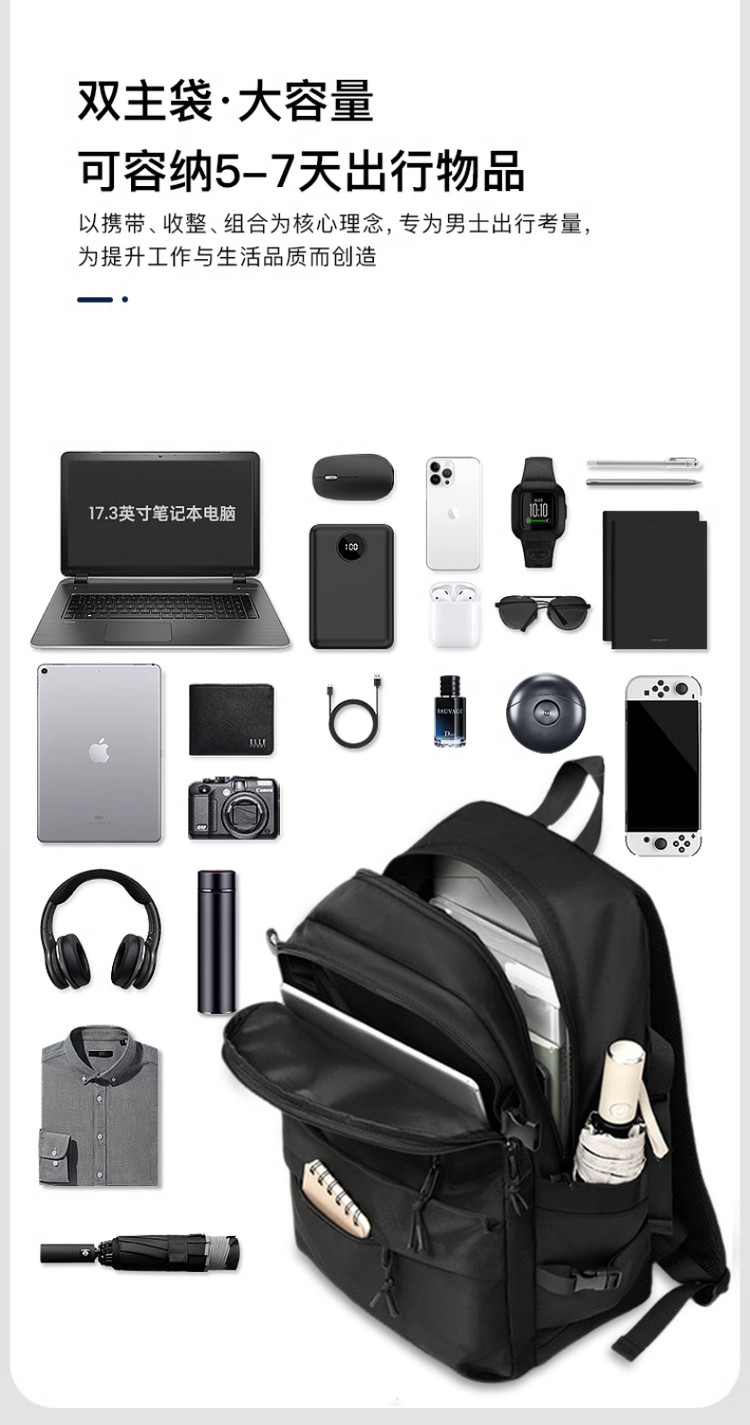 商品名称:双肩背包户外出游旅行包日常通勤百搭休闲初高中大学生大容量书包 612489