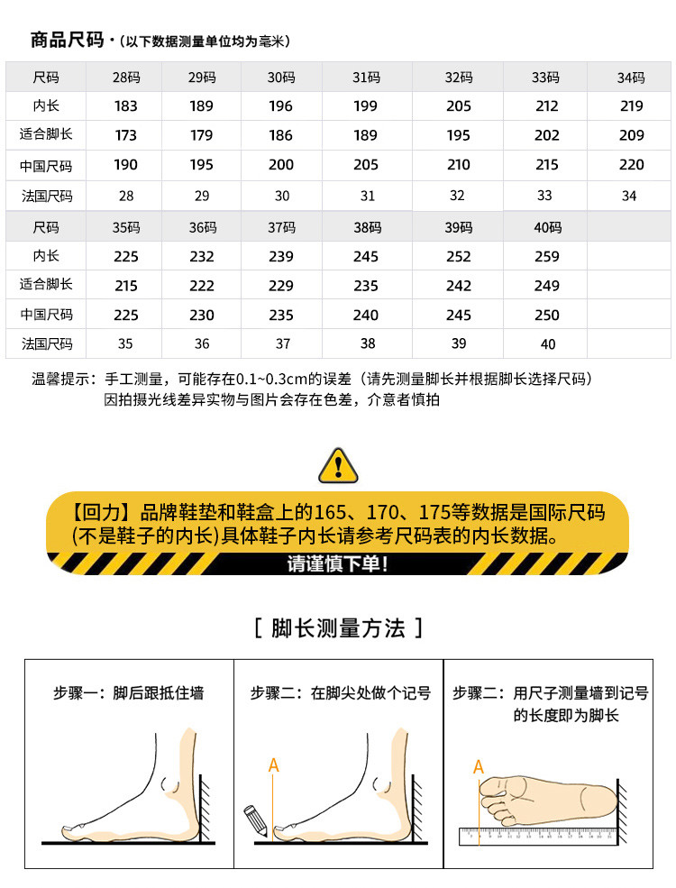 | 尺码 | 中国码 | 法国码 | 脚长(mm) | 鞋内长(mm) |