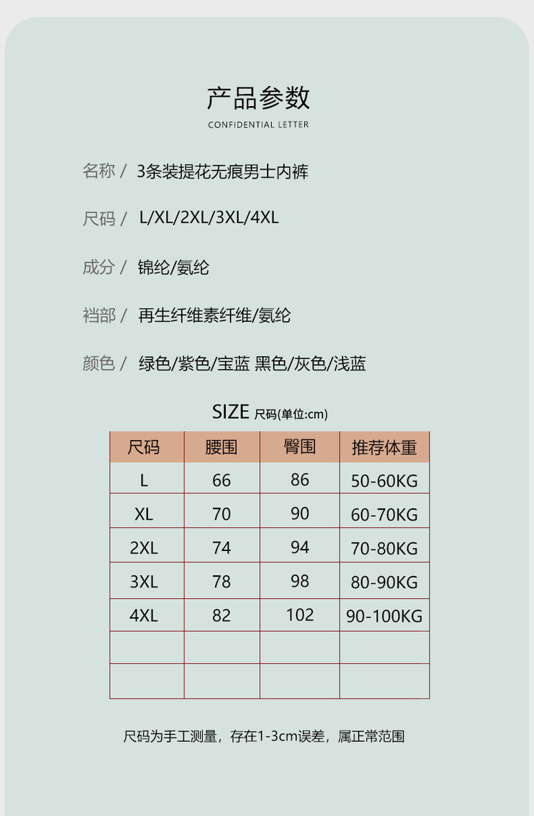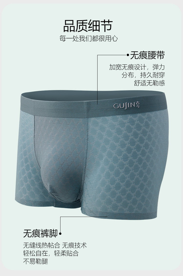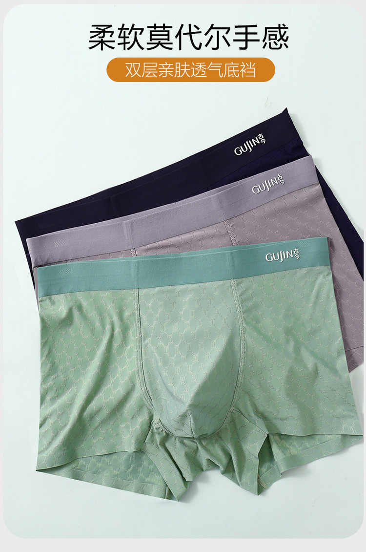商品名称:【莫代尔轻薄提花冰丝】3条装亲肤无束缚空气感透气平角男士内裤 763998