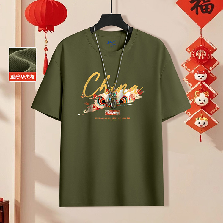 【华夫格】国潮复古高街帅气宽松潮牌休闲运动半袖男士短袖T恤 477203