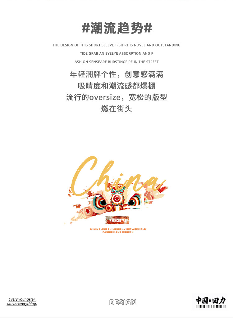 商品名称:【华夫格】国潮复古高街帅气宽松潮牌休闲运动半袖男士短袖T恤 477203