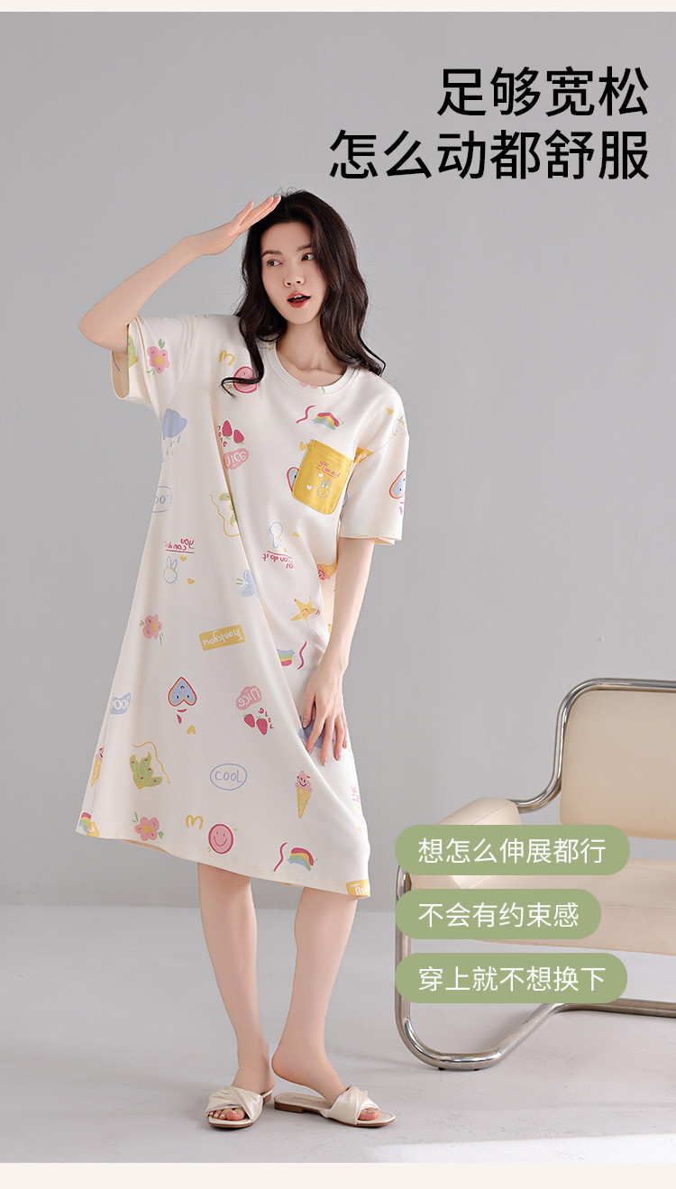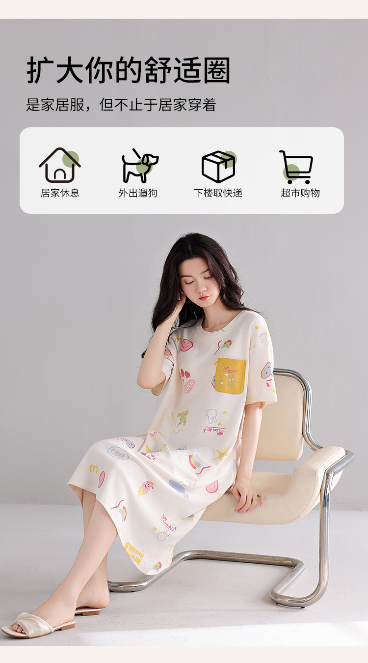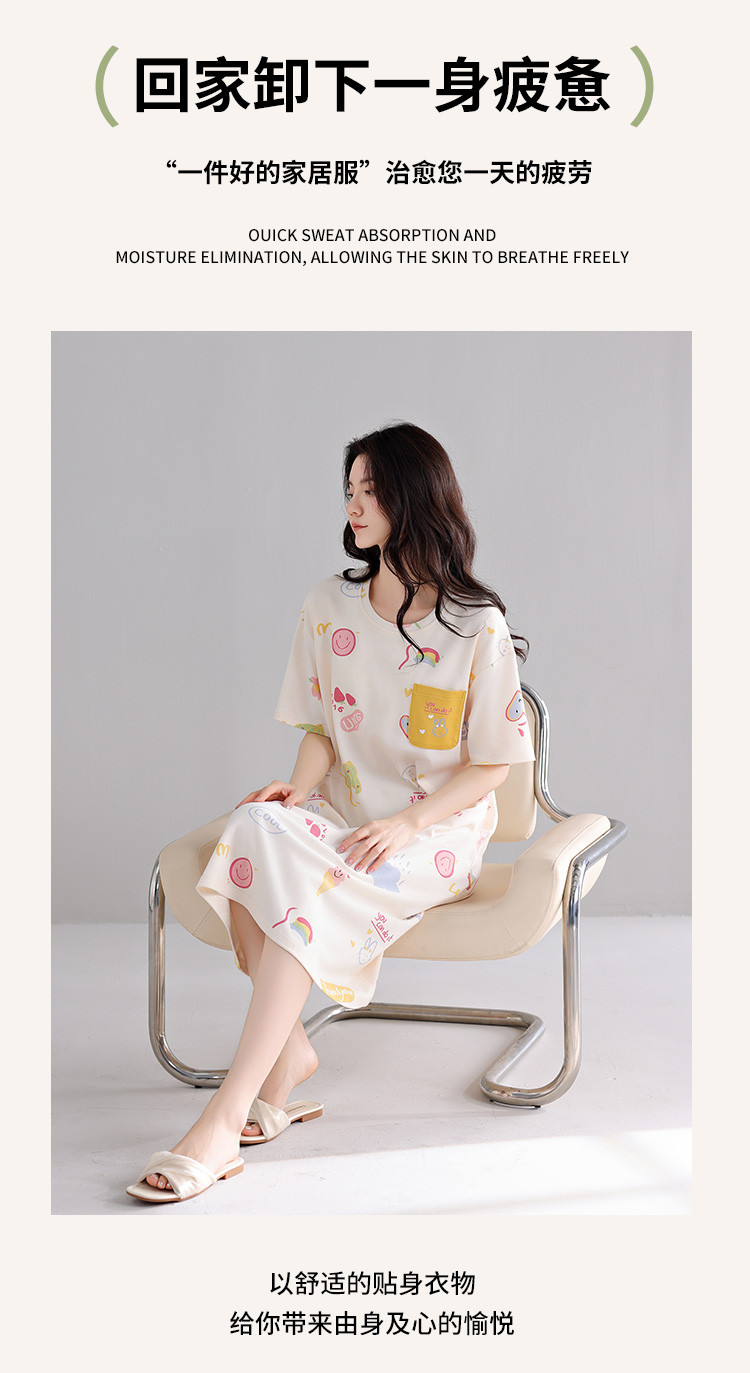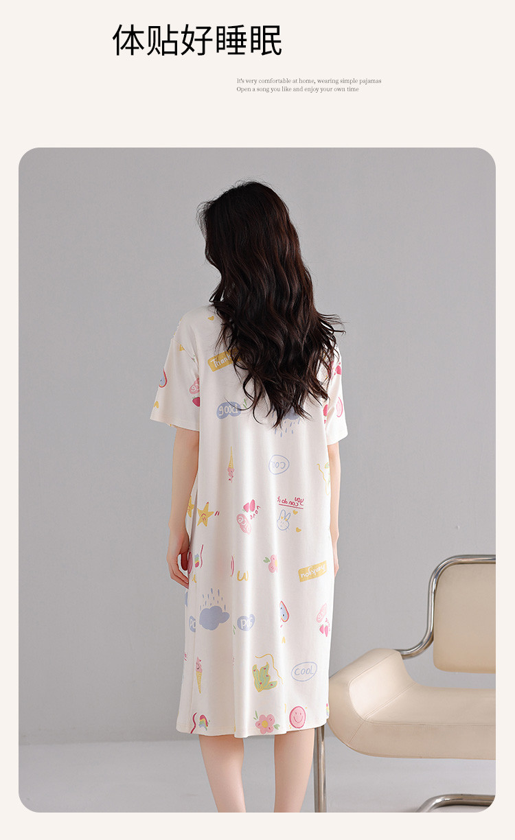 商品名称:【亲肤舒适】甜美睡裙女春夏柔棉短袖中长款连衣裙家居服可外穿 053707