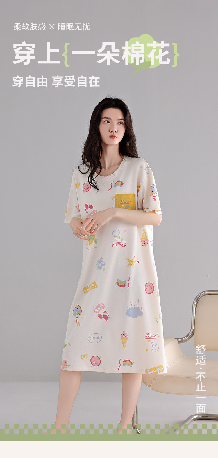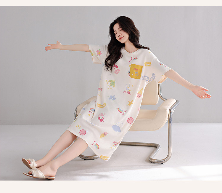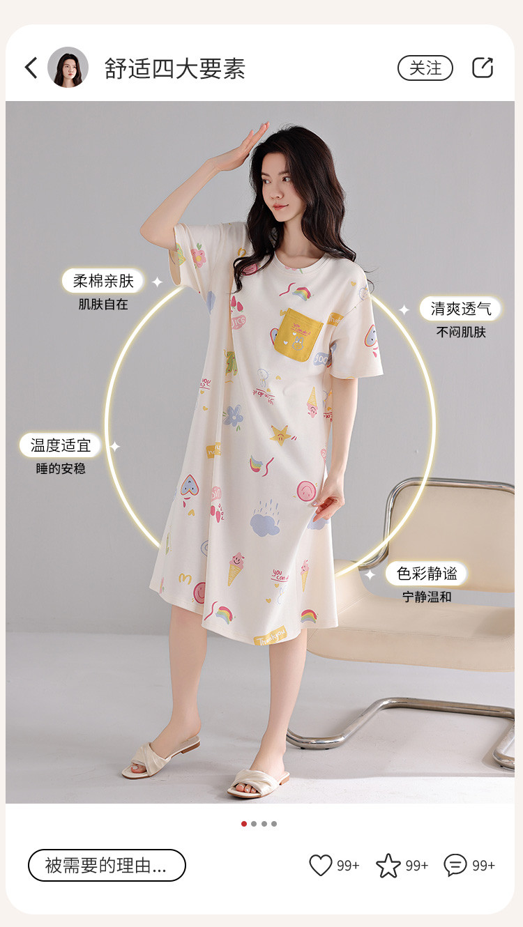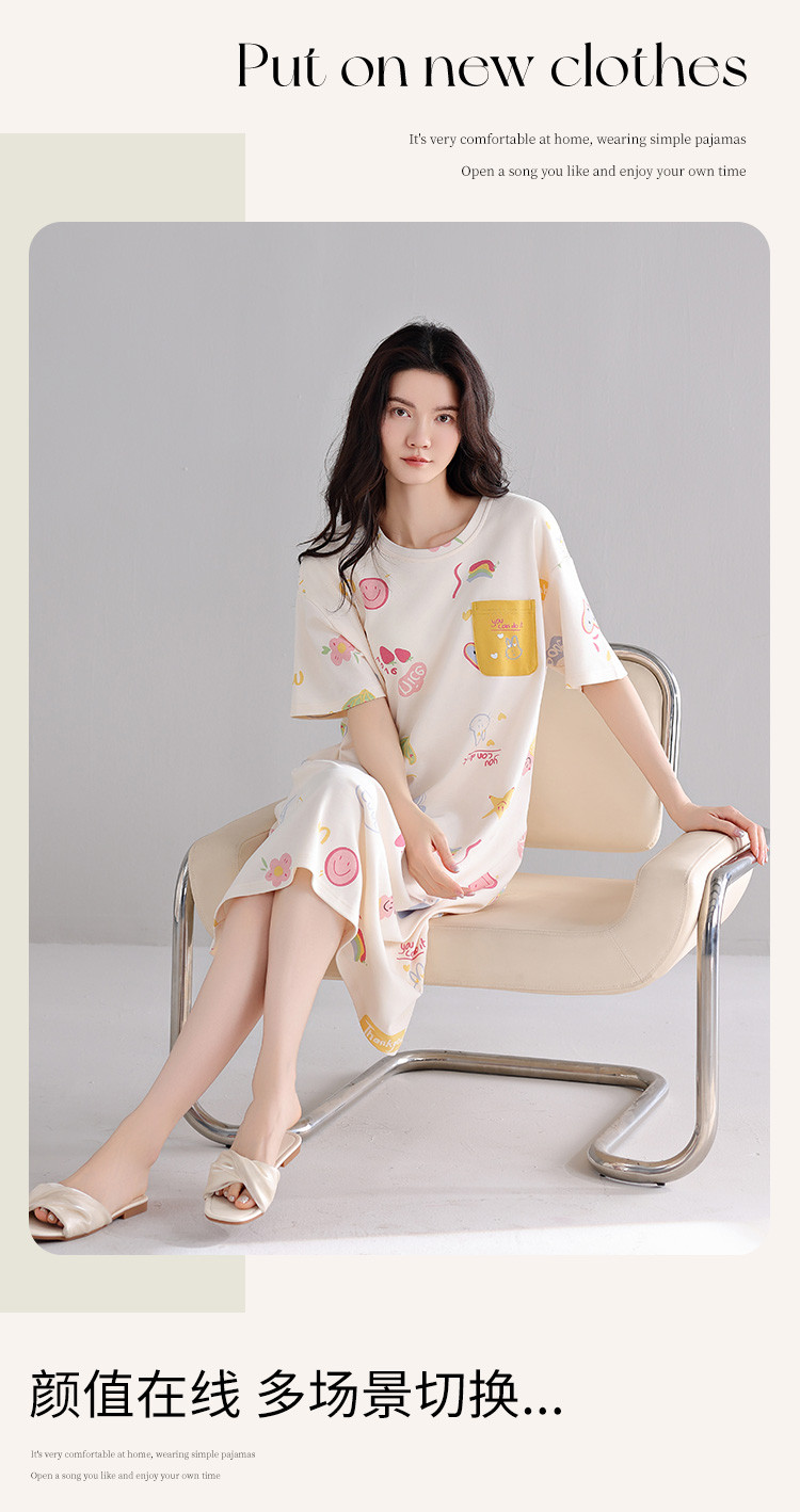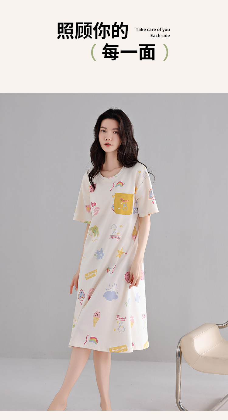 商品名称:【亲肤舒适】甜美睡裙女春夏柔棉短袖中长款连衣裙家居服可外穿 053707