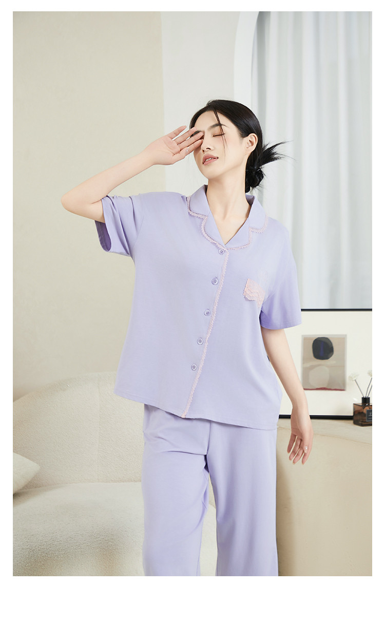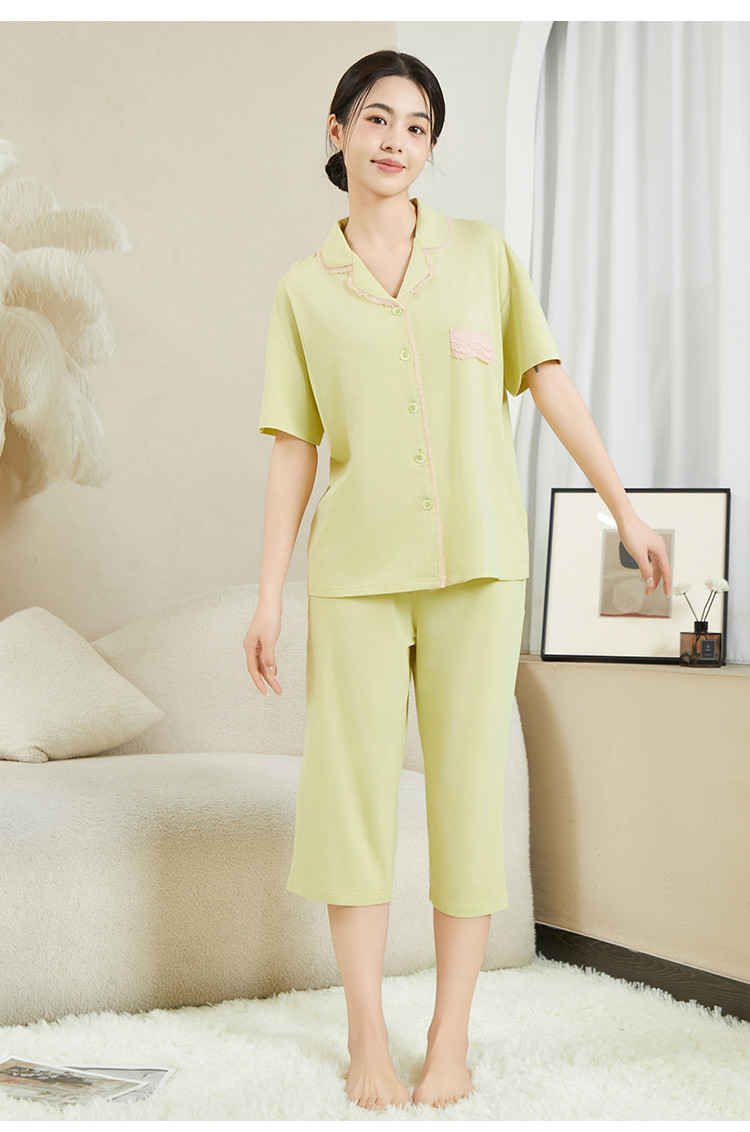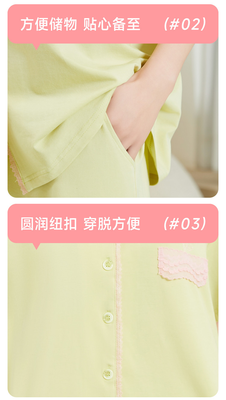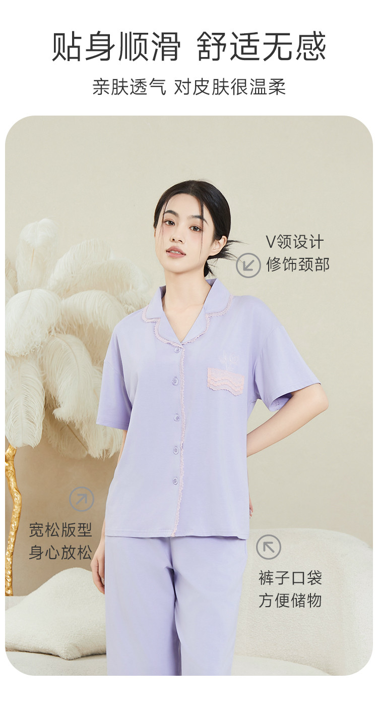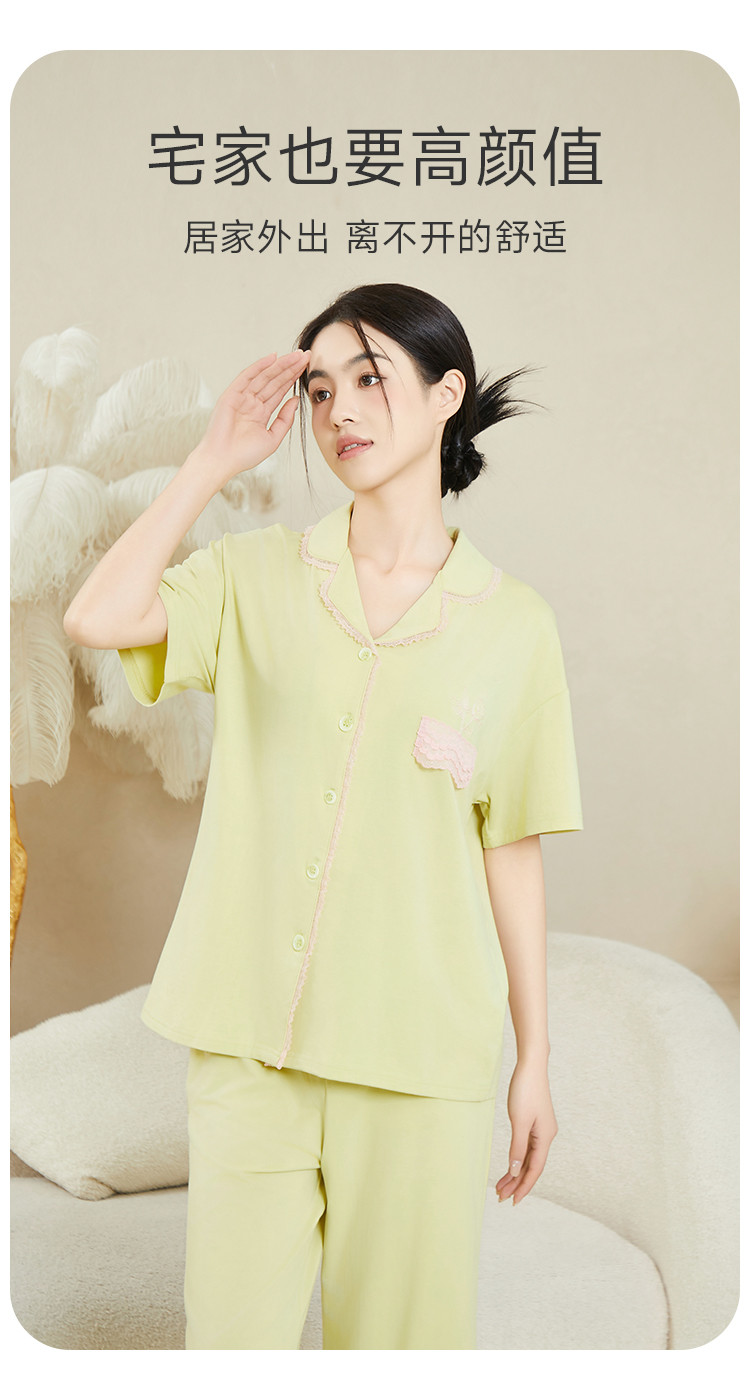 商品名称:纯色蕾丝睡衣女士外穿家居服高级感性感夏季薄款春秋棉质套装 057483