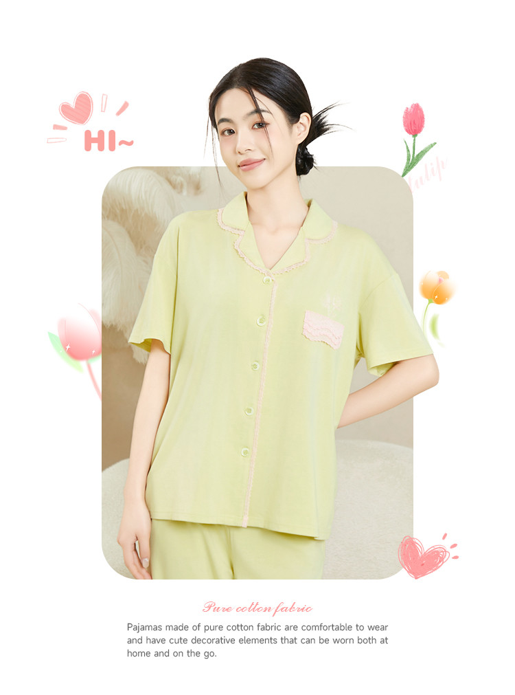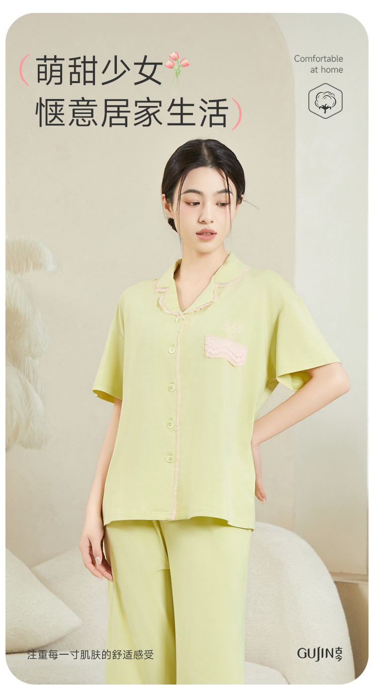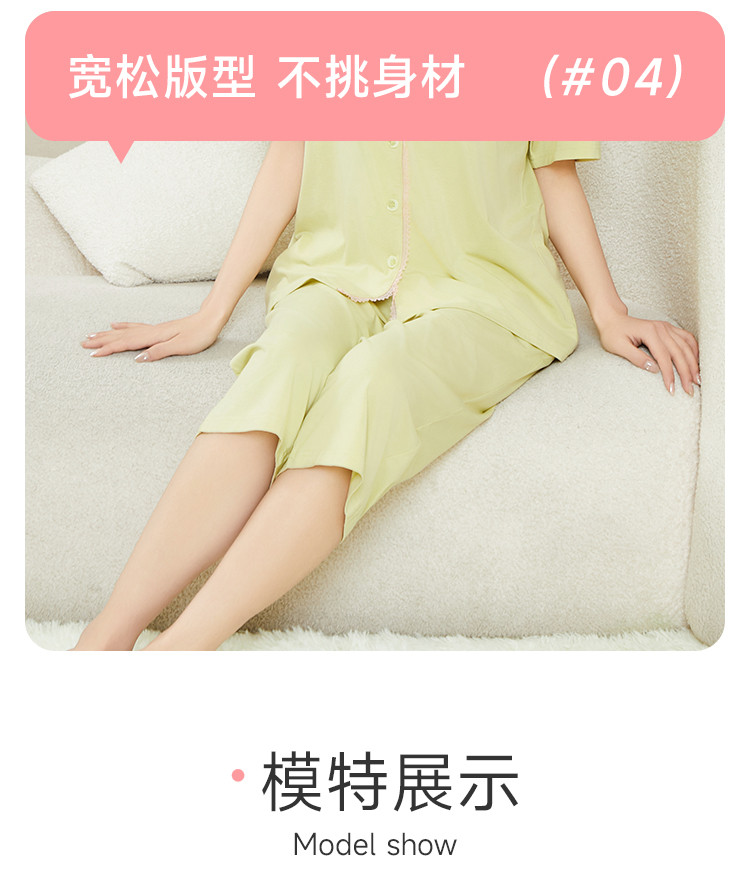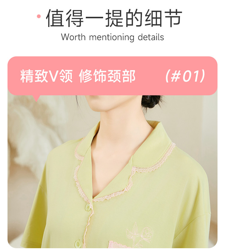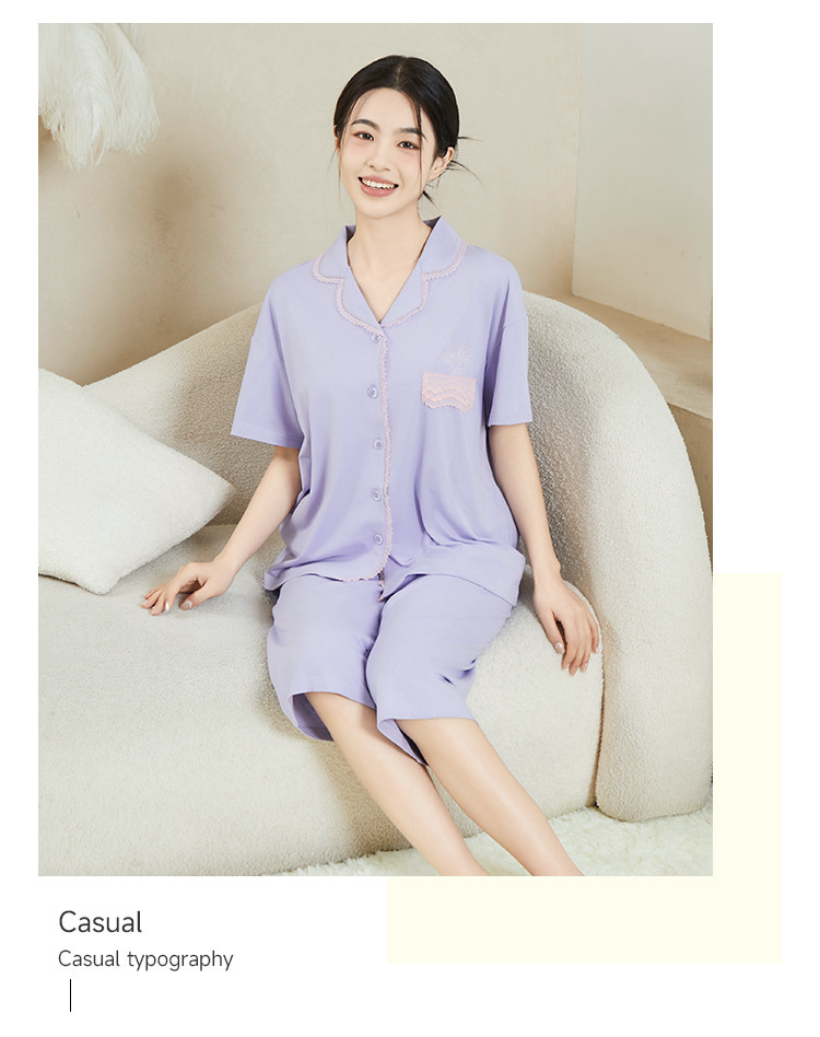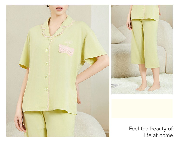 商品名称:纯色蕾丝睡衣女士外穿家居服高级感性感夏季薄款春秋棉质套装 057483