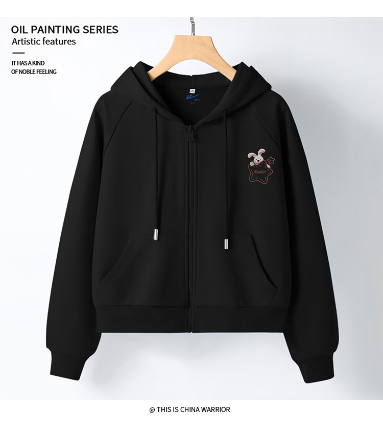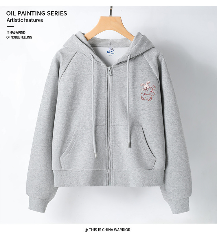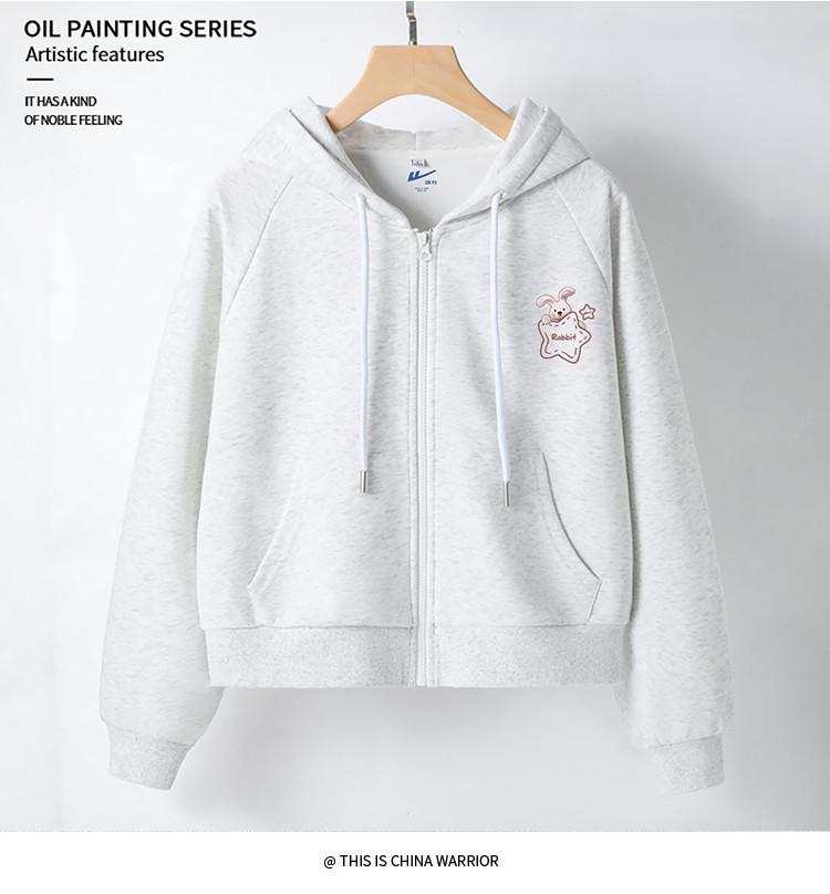 商品名称:【女装】春秋女式运动风卫衣连帽开衫短款高腰显瘦设计感外套女 759699