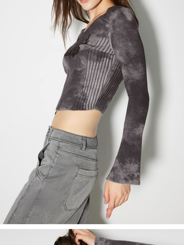 【修身短款】春季修身短款V领开衫毛衣针织衫女 659226