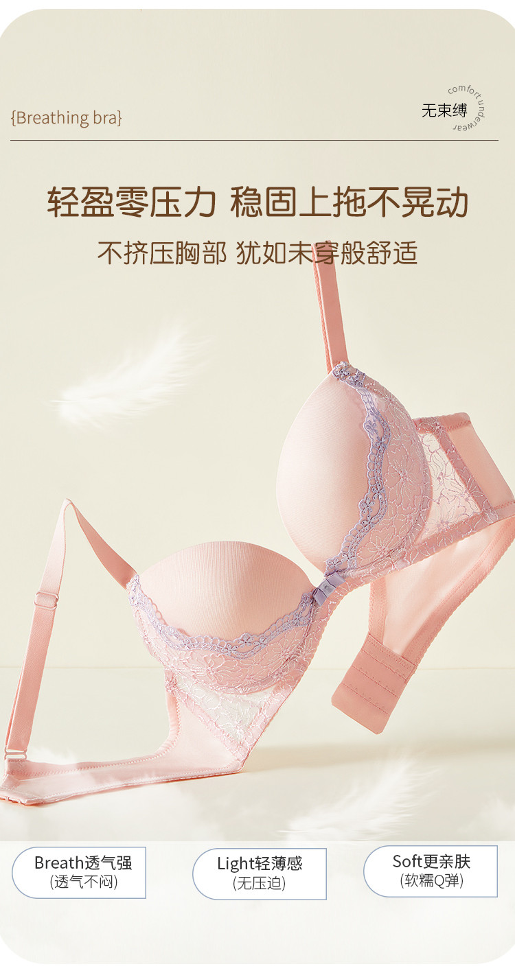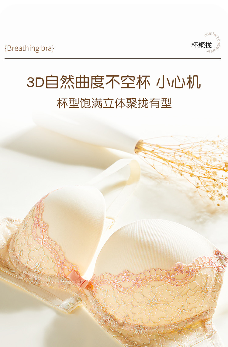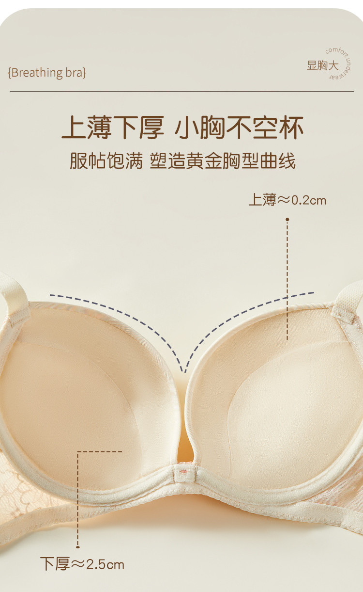 内衣女蕾丝花边文胸上薄下厚蕾丝简约舒适V型聚拢女士内衣胸罩 410827