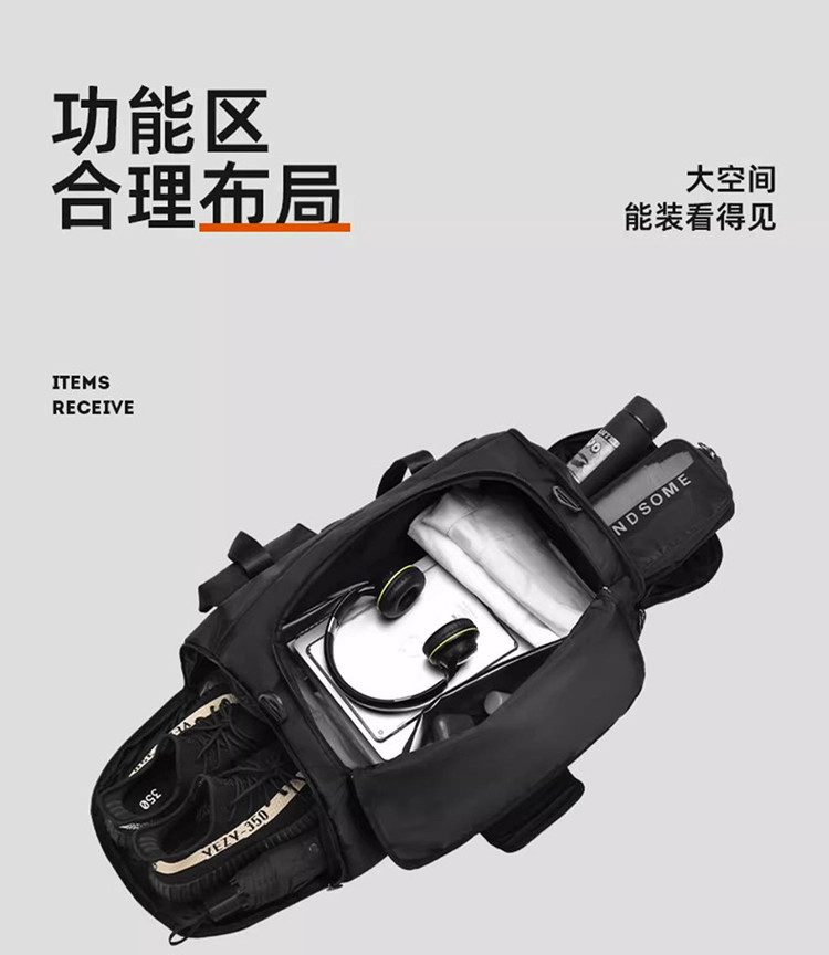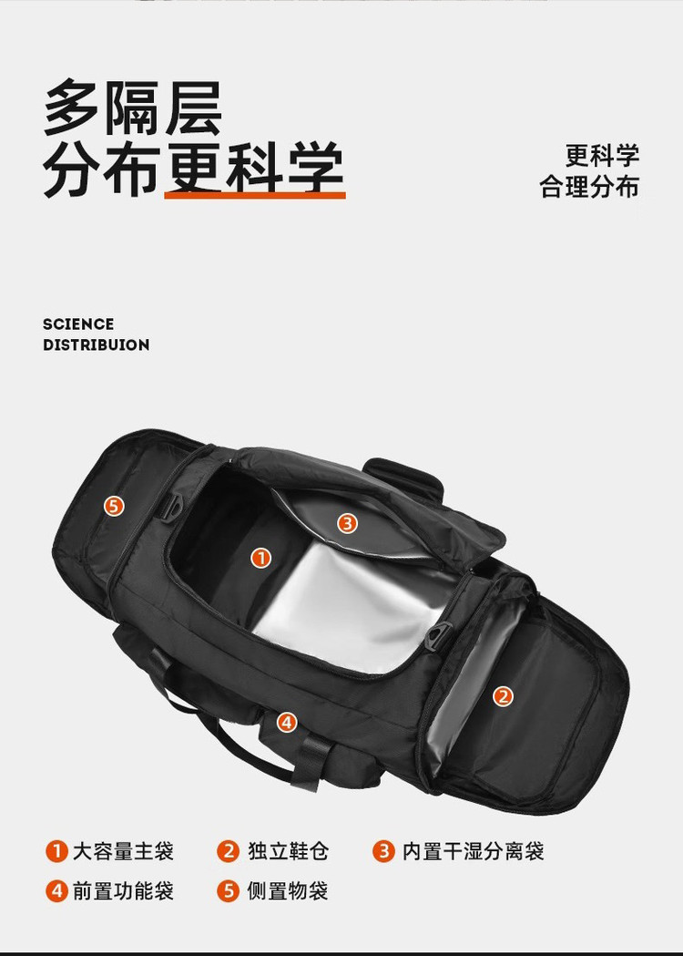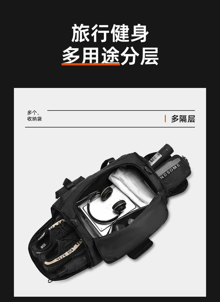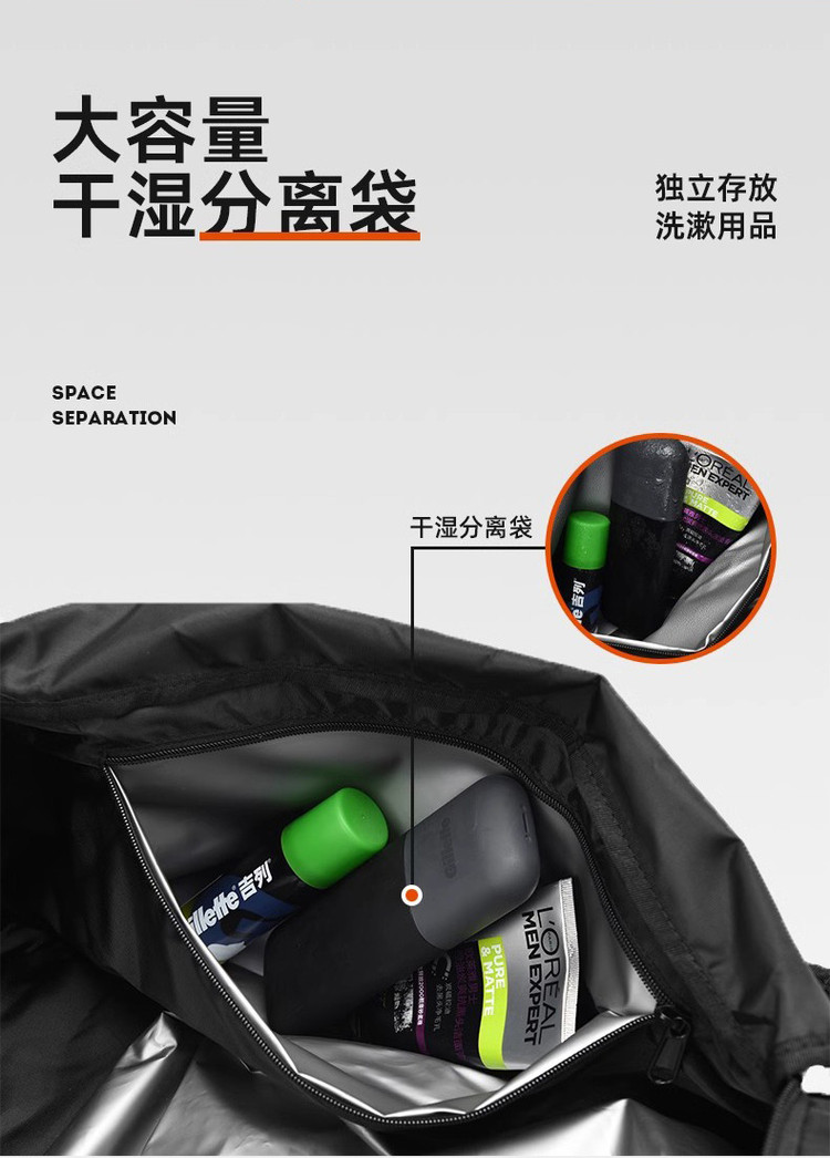 商品名称:健身包男手提旅行包大容量行李包运动包出差背包单肩包干湿分离 714633