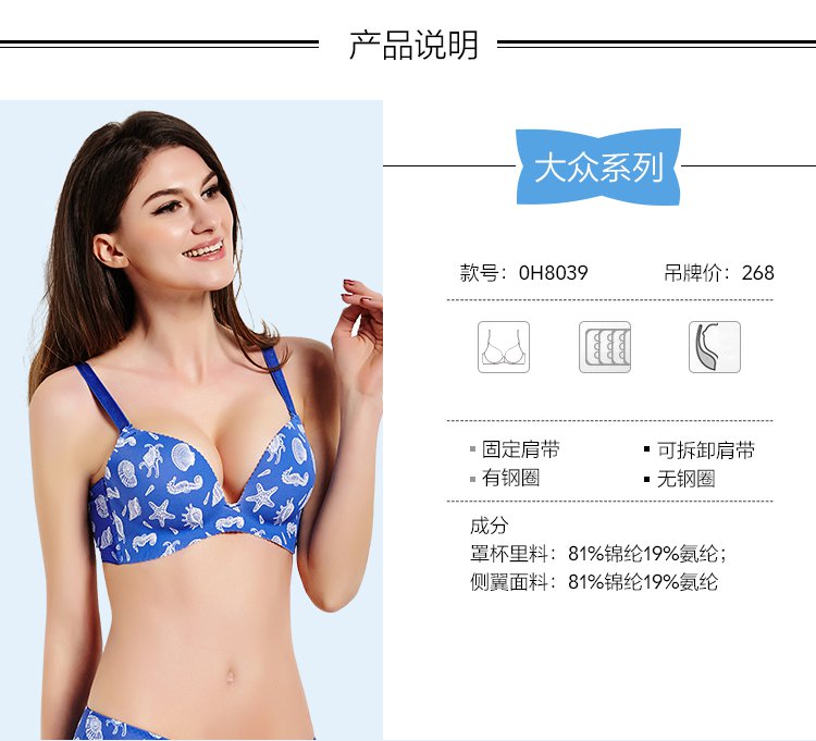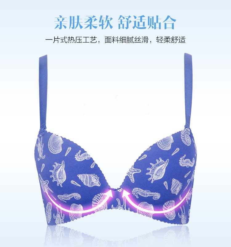 商品名称:【捡漏款】光面一片式印花舒适小胸聚拢内衣无钢圈文胸内衣 023691