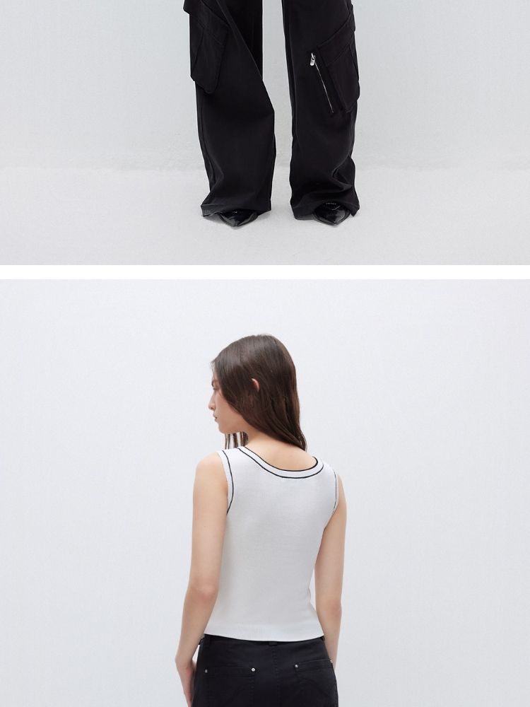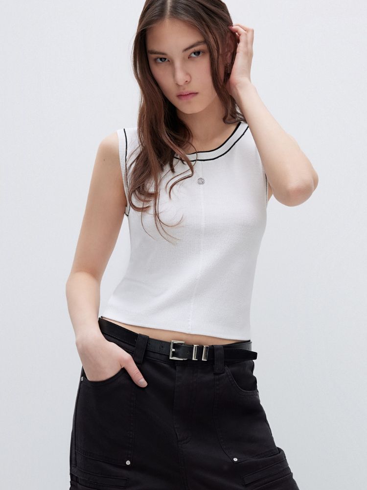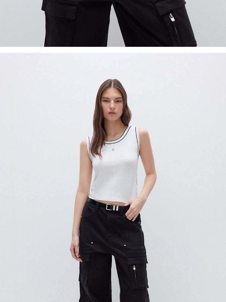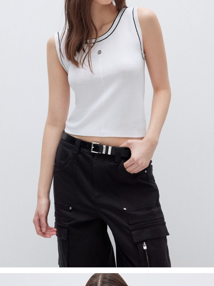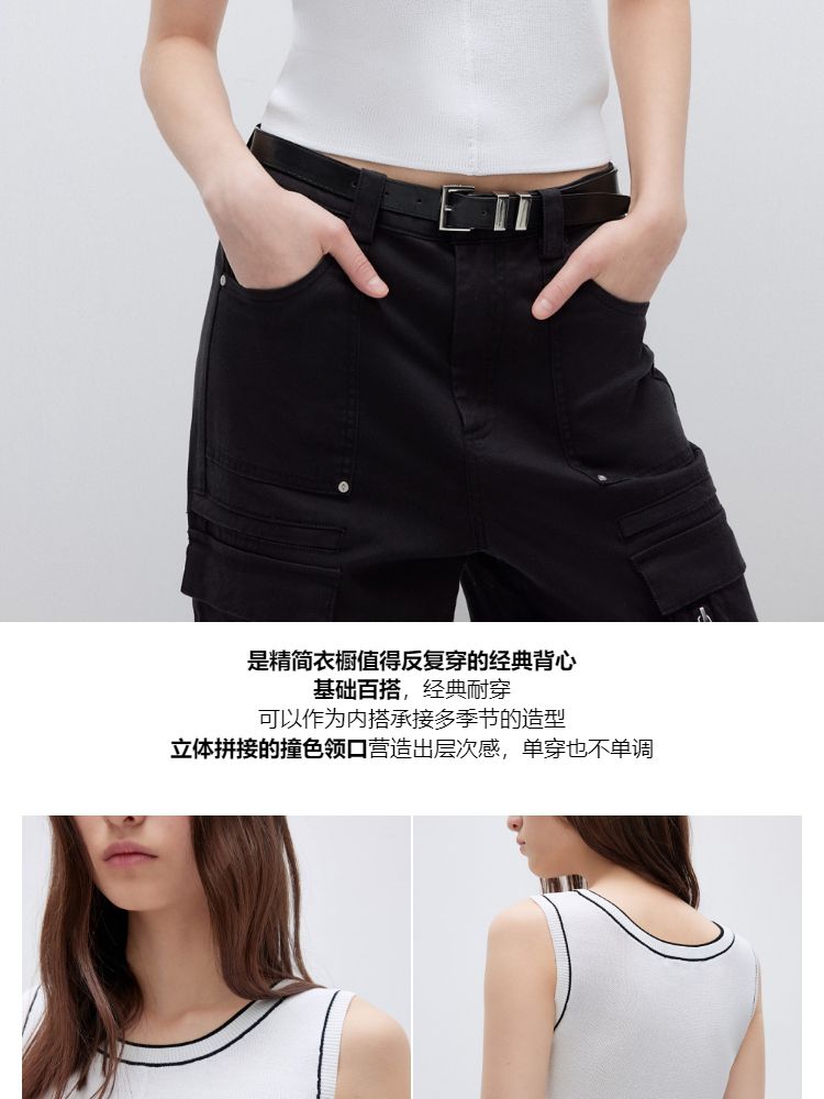 商品名称:【轻薄透气】2025夏季经典百搭轻薄弹力撞色背心针织衫女 032922