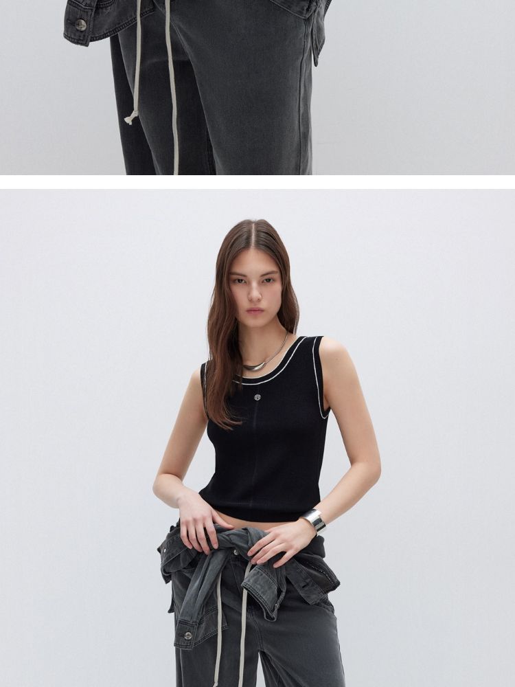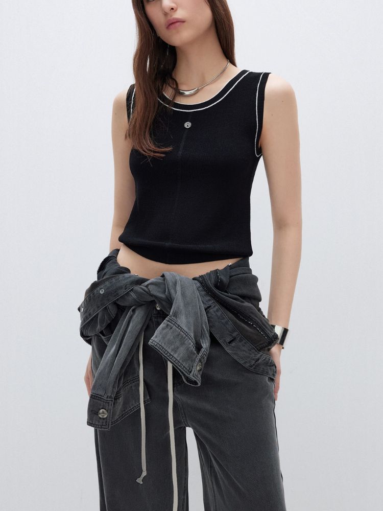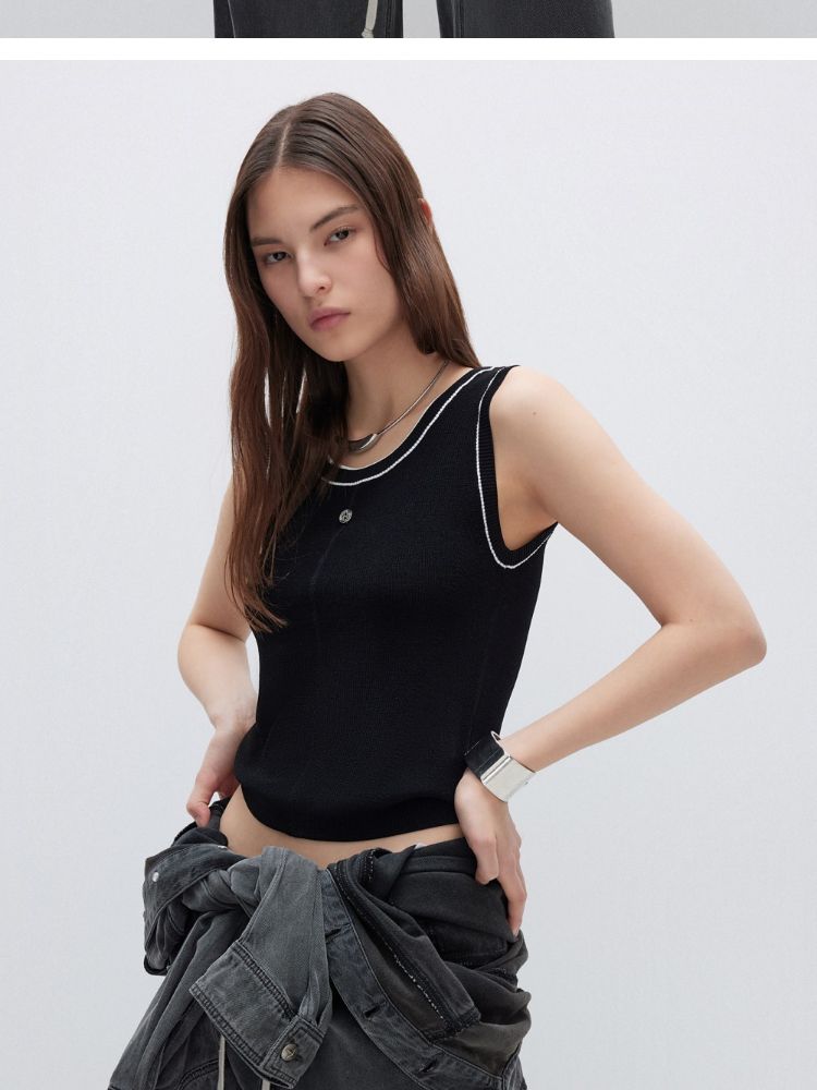 【轻薄透气】2025夏季经典百搭轻薄弹力撞色背心针织衫女 032922