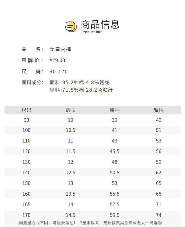 | 尺码 | 身高(cm) | 腰围(cm) | 裤长(cm) | 臀围(cm) | 适合年龄 | 号型 |