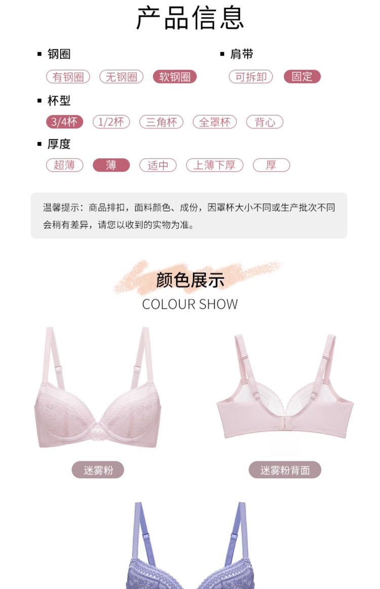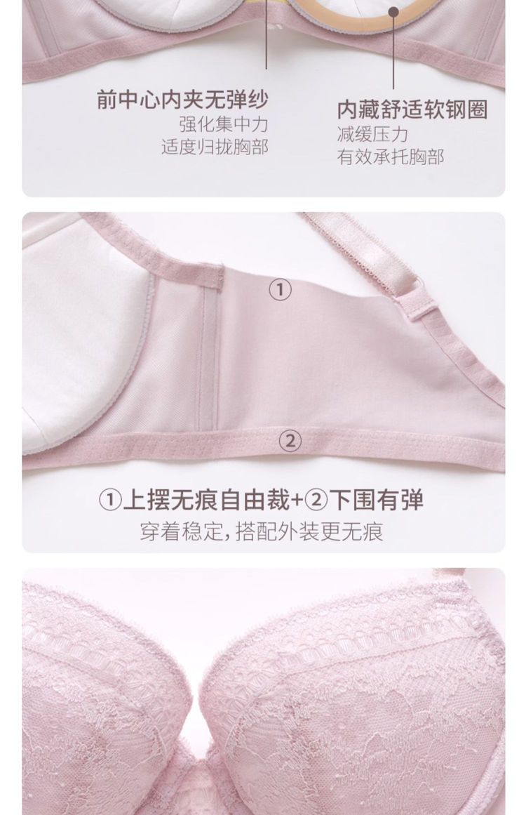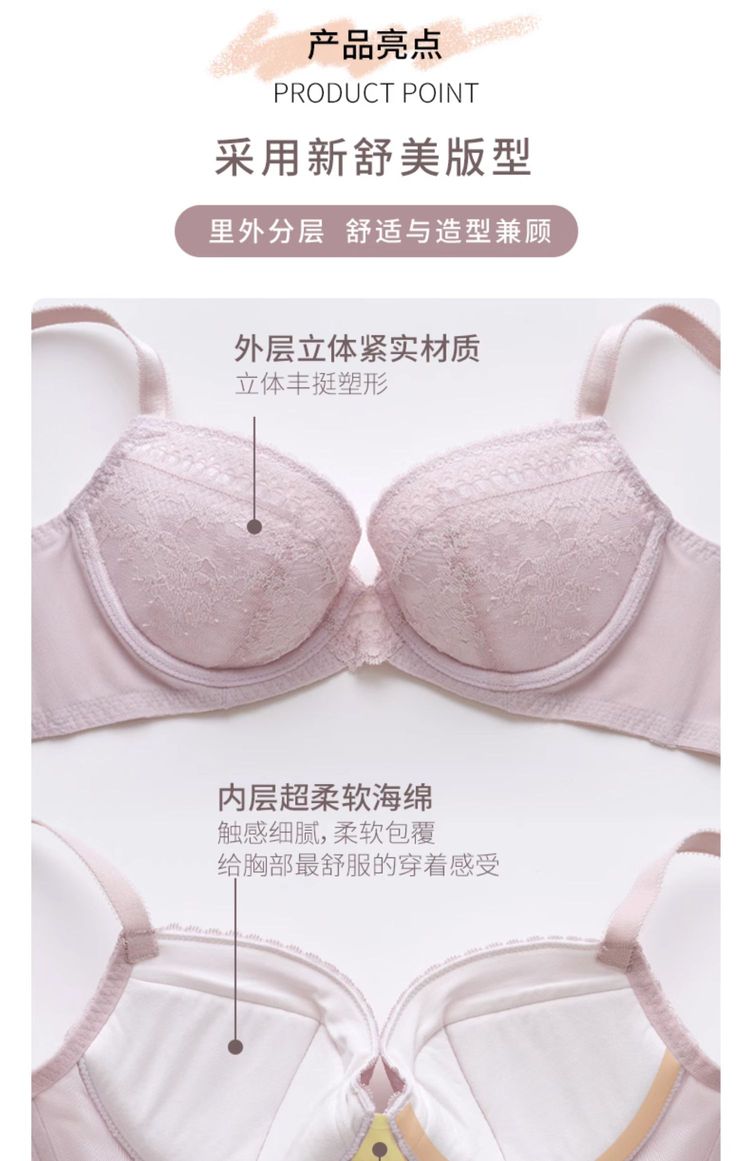 商品名称:聚拢丰盈薄款蕾丝舒适内衣女软钢圈软支撑文胸 622853