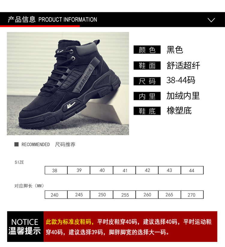 商品名称:【加绒保暖】秋冬学生高帮马丁靴爬山运动鞋休闲机车工装男鞋 208848